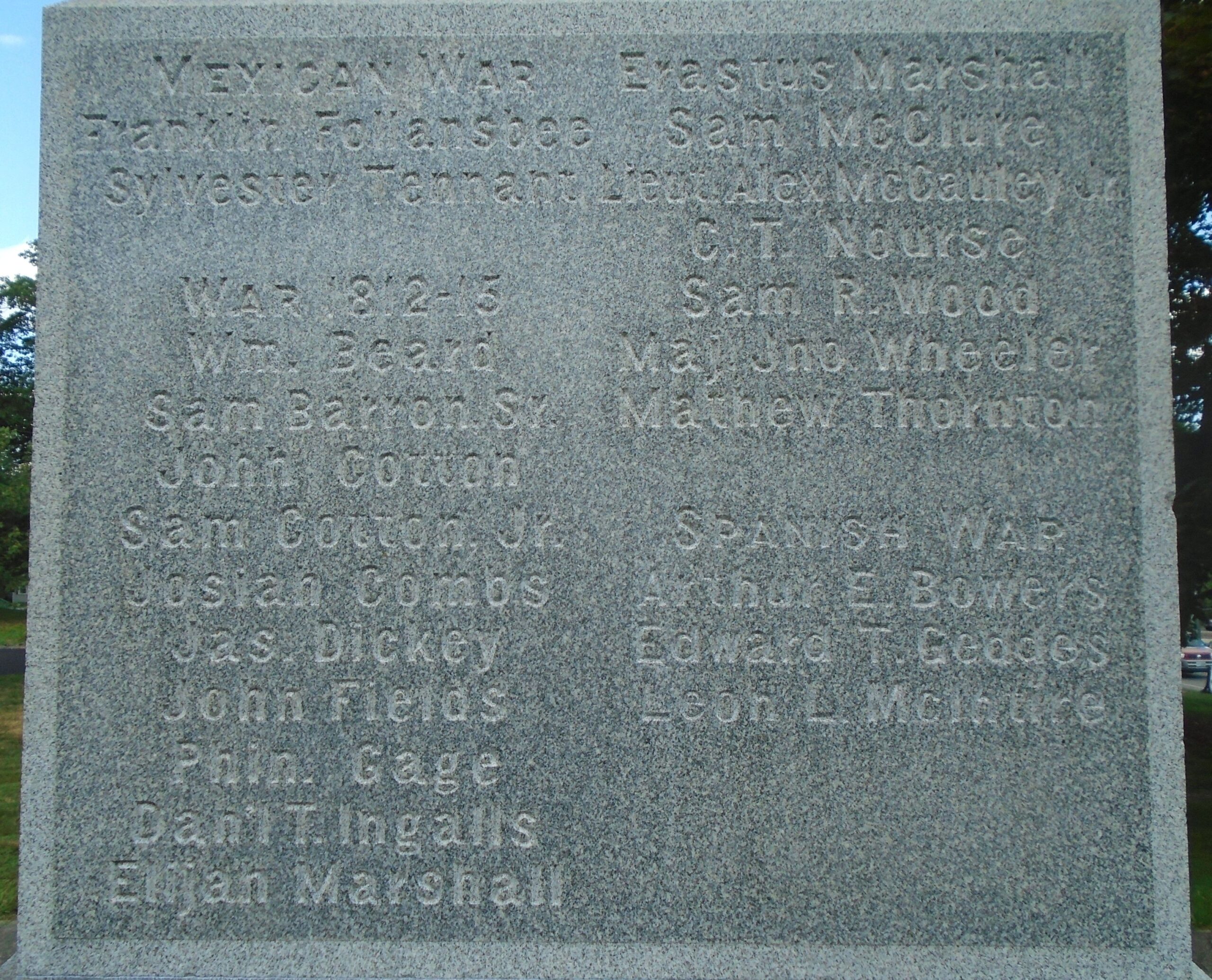 Wars Commemorated: WAR OF 1812, MEXICAN WAR AND SPANISH WAR