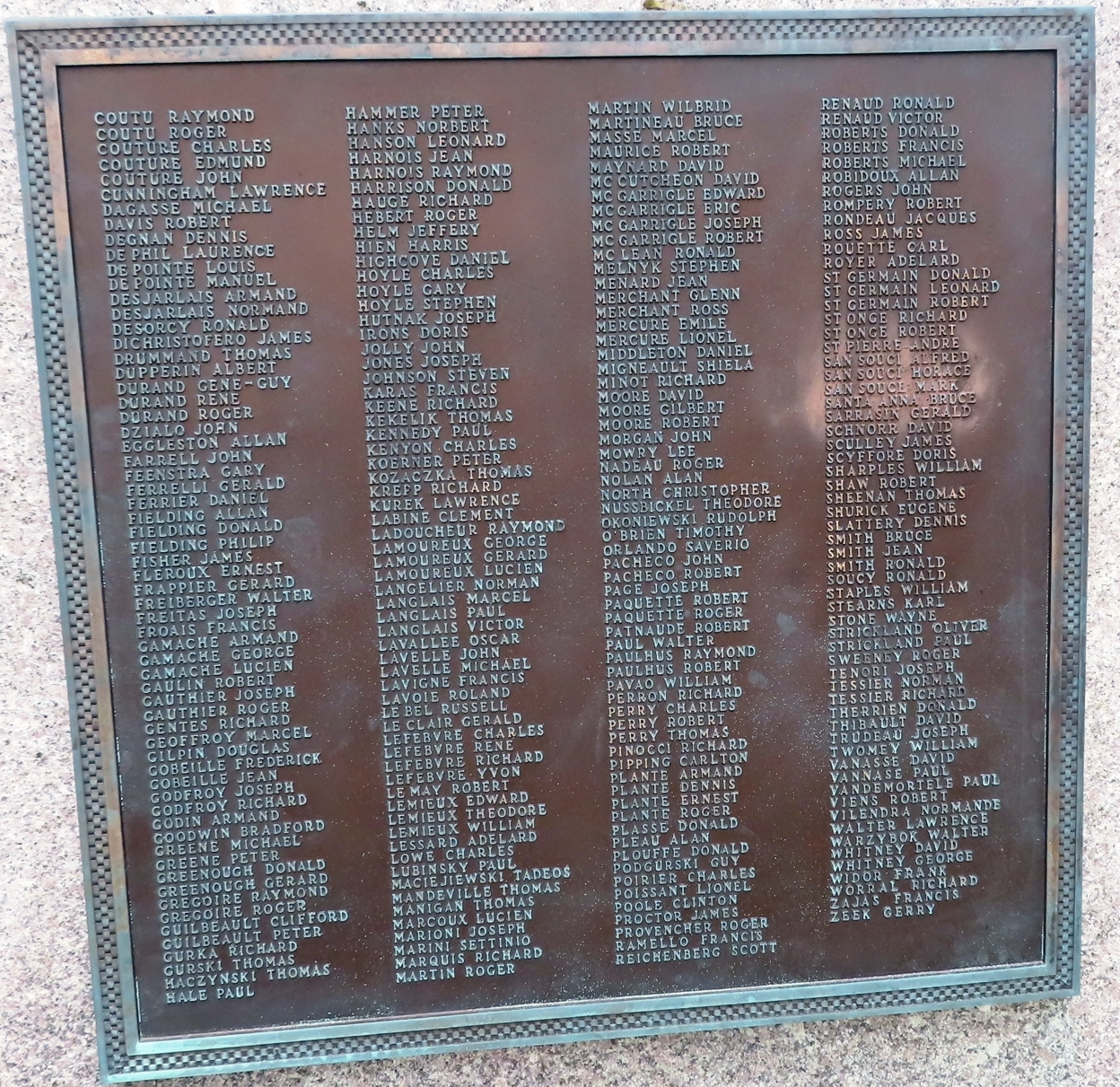 TOWN OF NORTH SMITHFIELD WAR VETERANS MEMORIAL PLAQUE C