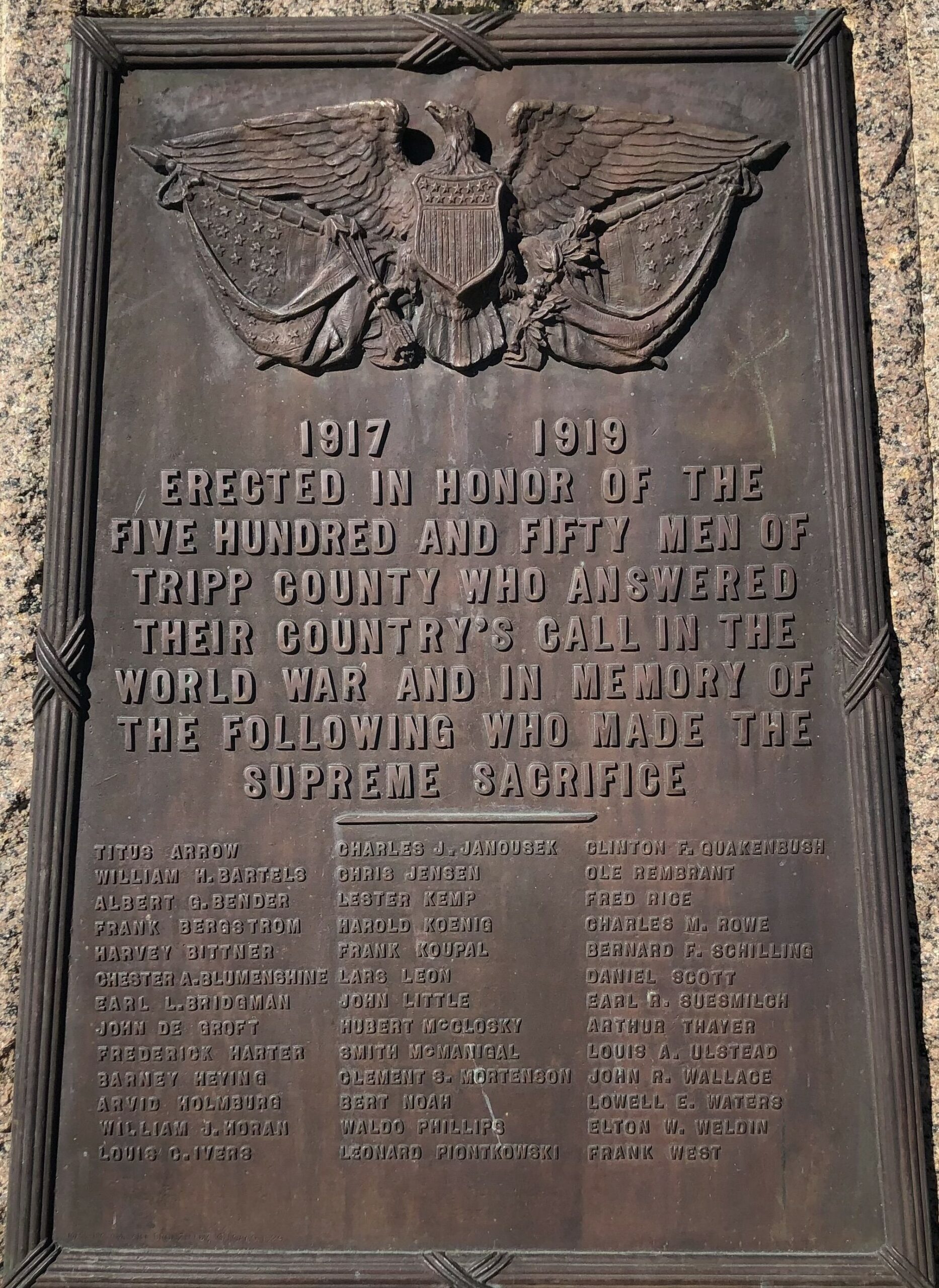 TRIPP COUNTY WORLD WAR I MEMORIAL PLAQUE