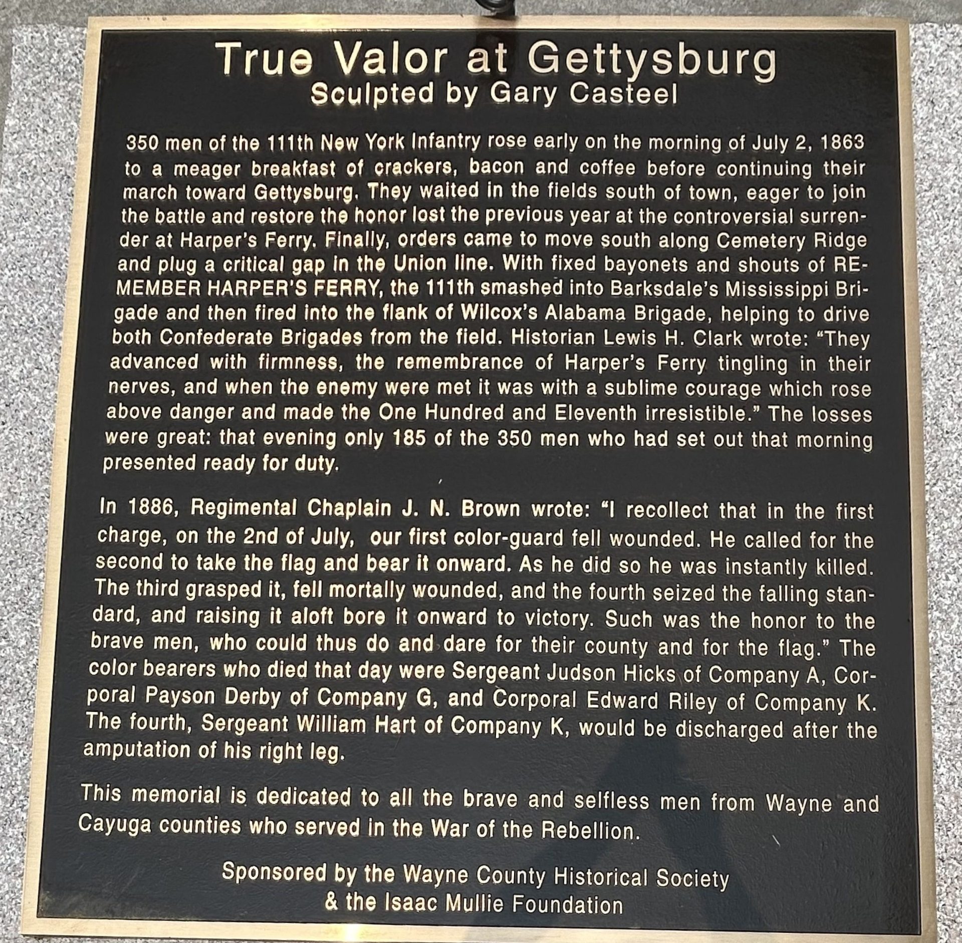 TRUE VALOR AT GETTYSBURG WAR MEMORIAL PLAQUE