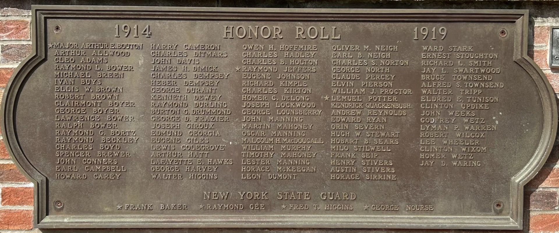 TRUMANSBURG HONOR ROLL WAR MEMORIAL PLAQUE