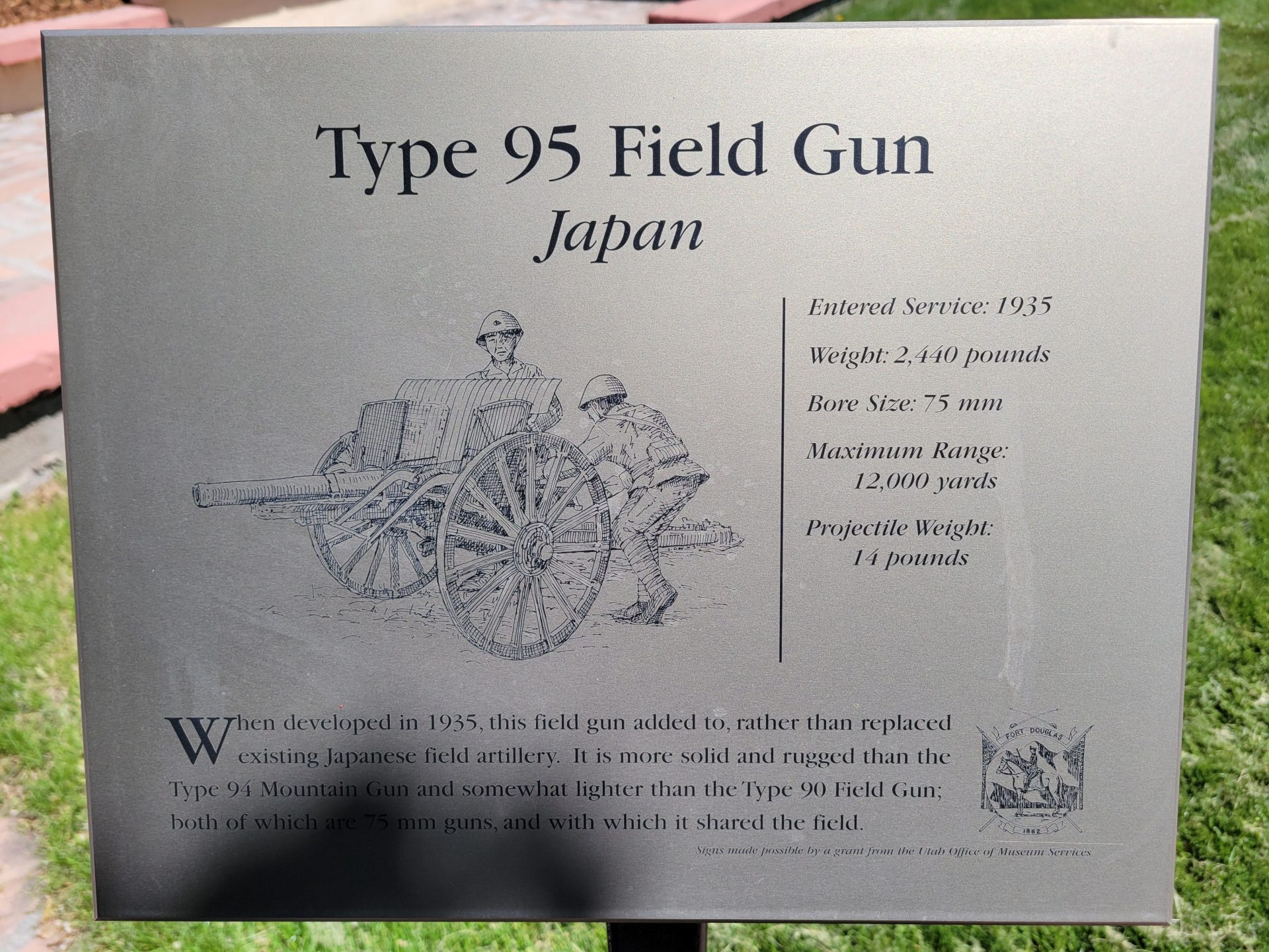 TYPE 95 FIELD GUN JAPAN WAR MEMORIAL PLAQUE