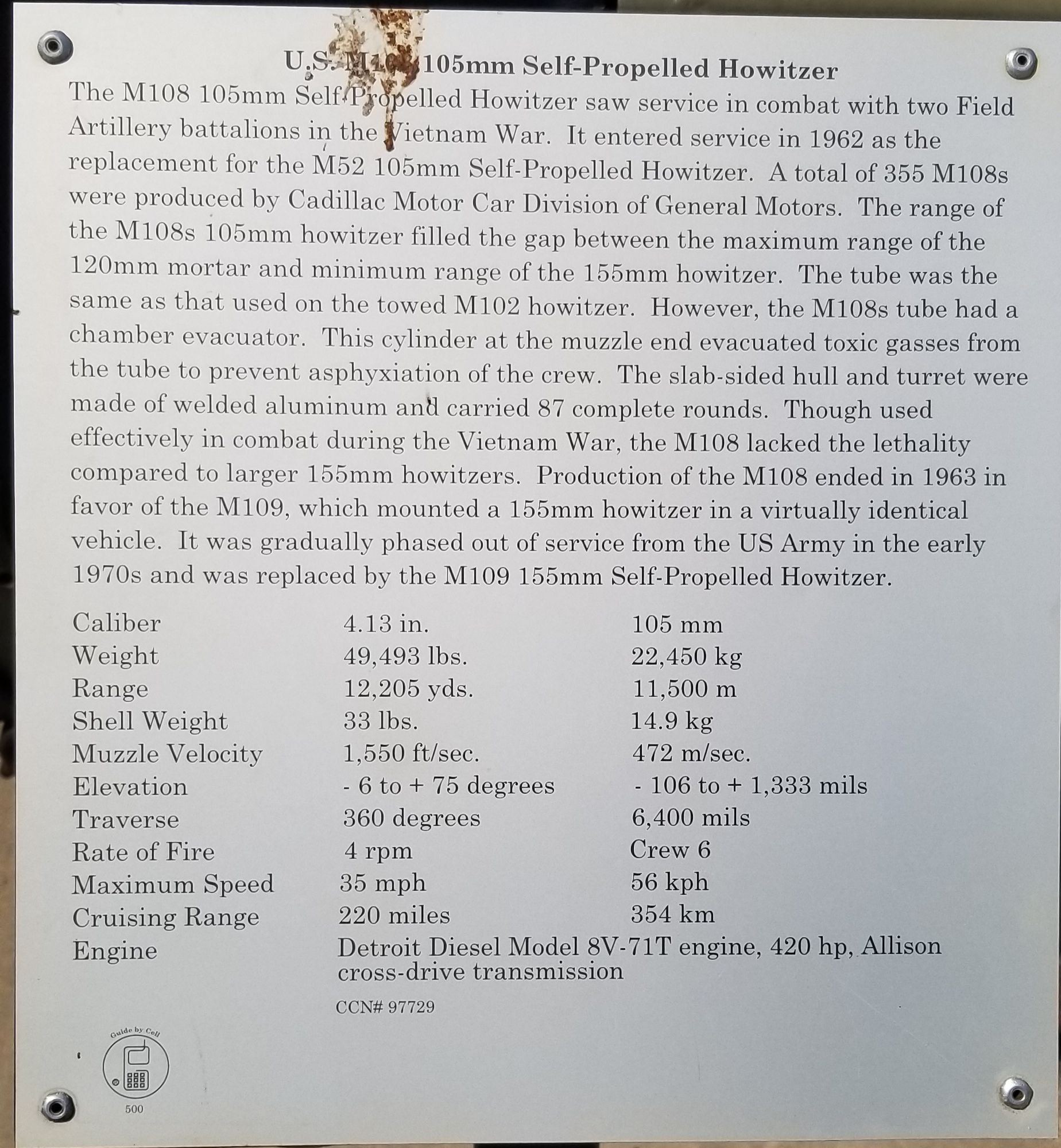 U.S. M108 105MM SELF-PROPELLED HOWITZER MEMORIAL PLAQUE