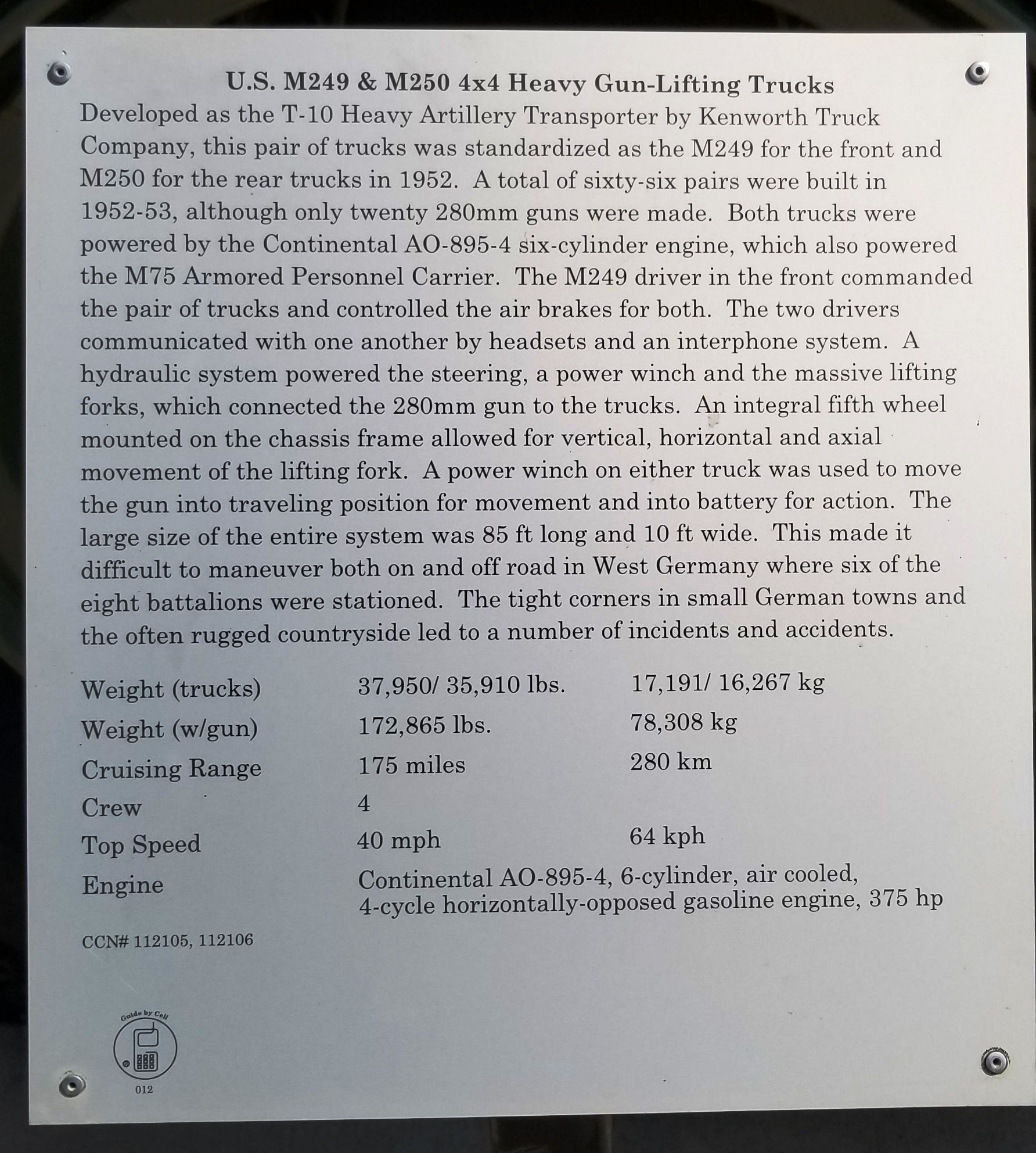 SEE ALSO-U.S. M249 & M250 4X4 HEAVY GUN-LIFTING TRUCKS MEMORIAL