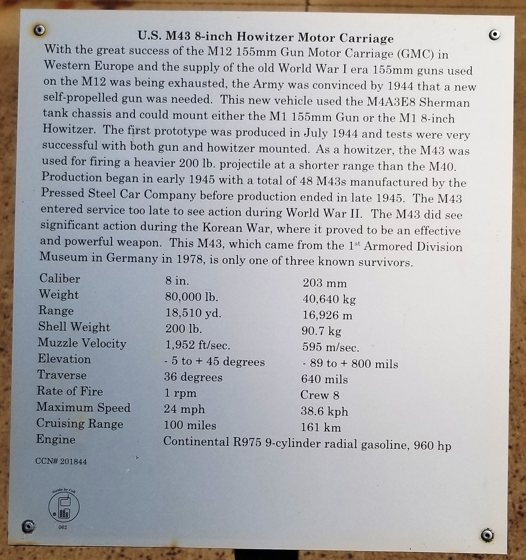 U.S. M43 8-INCH HOWITZER MOTOR CARRIAGE MEMORIAL PLAQUE