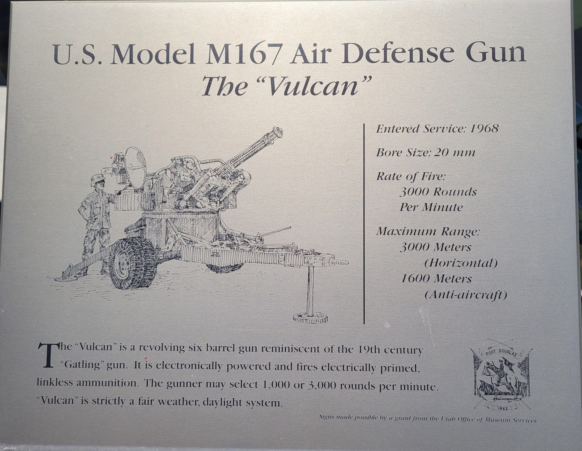 U.S. MODEL M167 AIR DEFENSE GUN THE VULCAN WAR MEMORIAL PLAQUE
