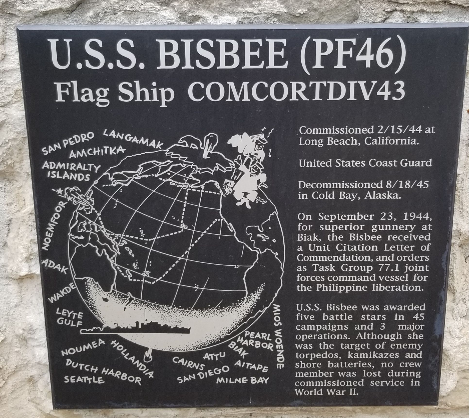 U.S.S. BISBEE (PF46) WAR MEMORIAL PLAQUE