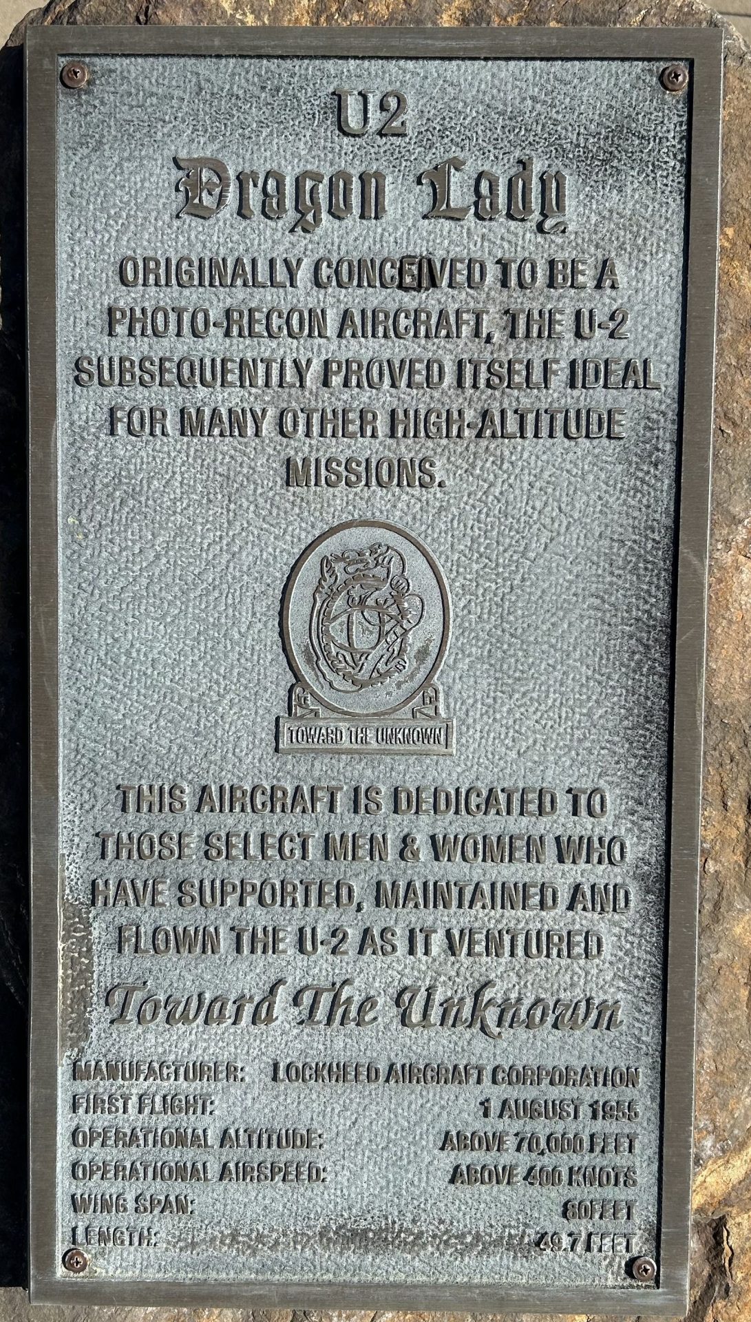 U2 DRAGON LADY MEMORIAL AIRCRAFT PLAQUE
