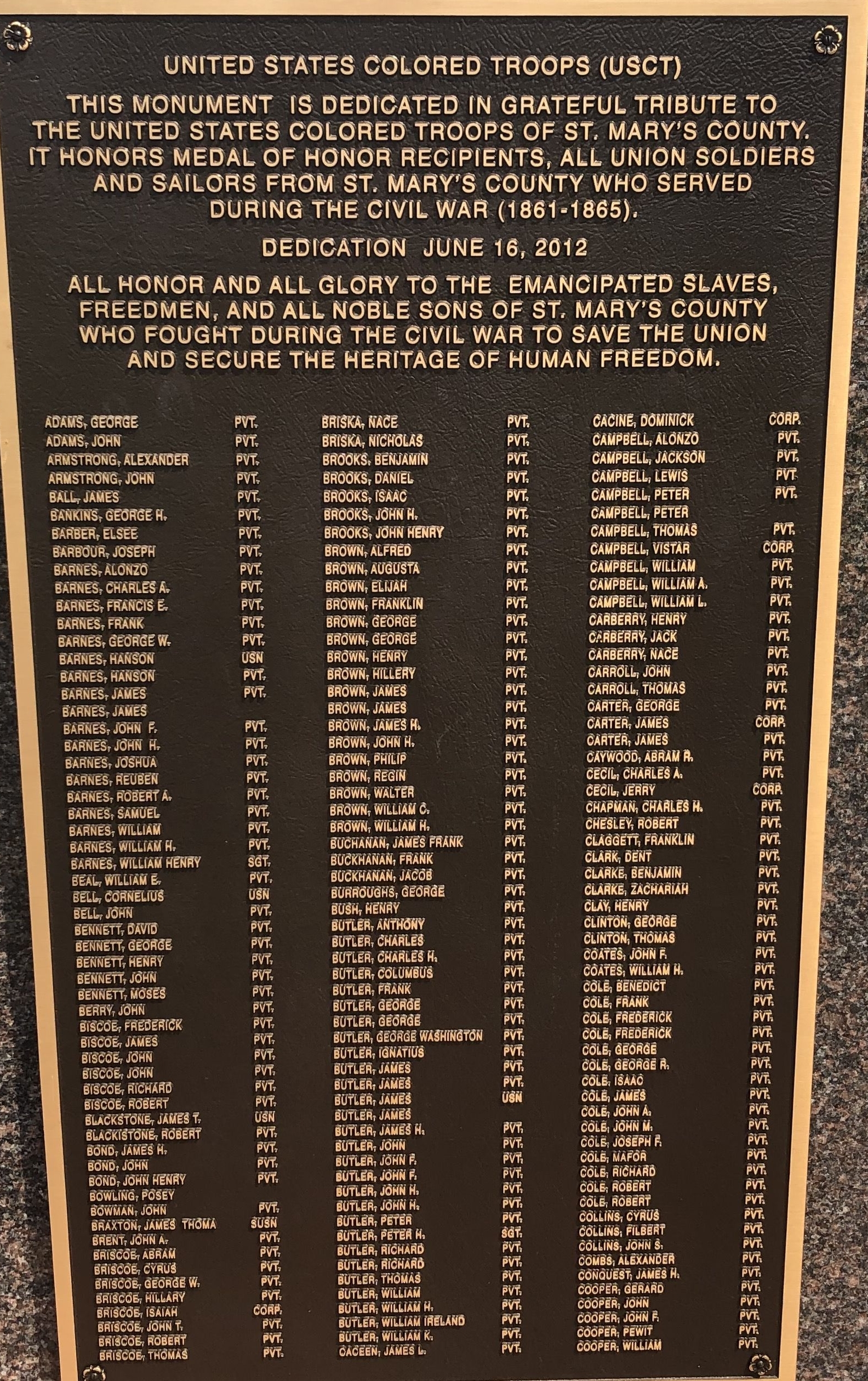UNITED STATES COLORED TROOPS CIVIL WAR MEMORIAL PLAQUE A