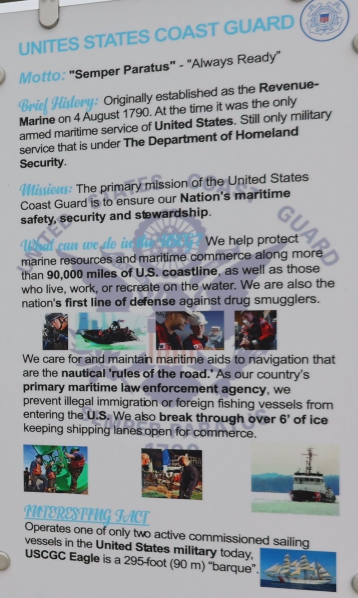 UNITIES STATES COAST GUARD MEMORIAL PLAQUE
