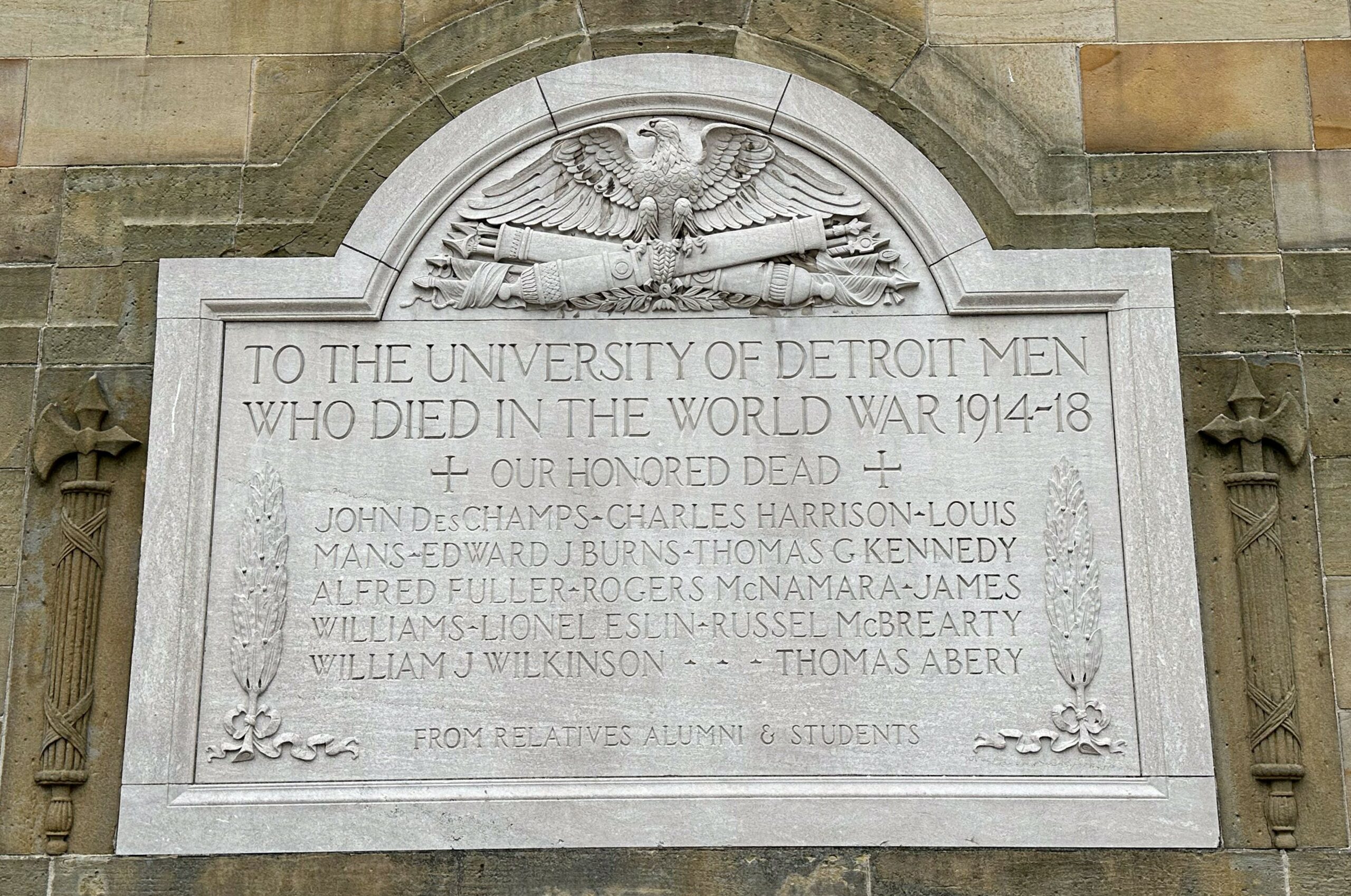 UNIVERSITY OF DETROIT WORLD WAR MEMORIAL CLOCK TOWER STONE