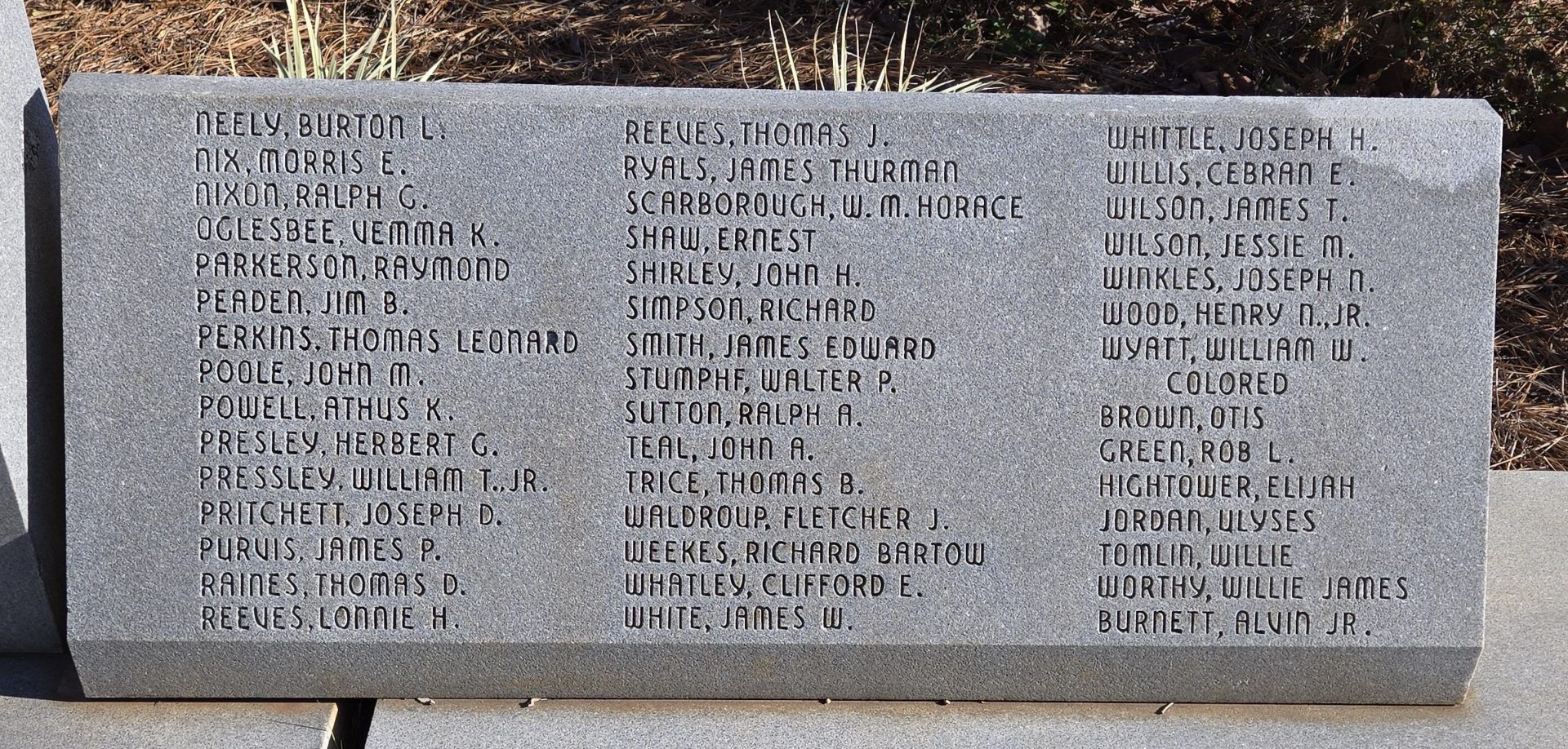 UPSON COUNTY SUPREME SACRIFICE WORLD WAR II MEMORIAL RIGHT STONE