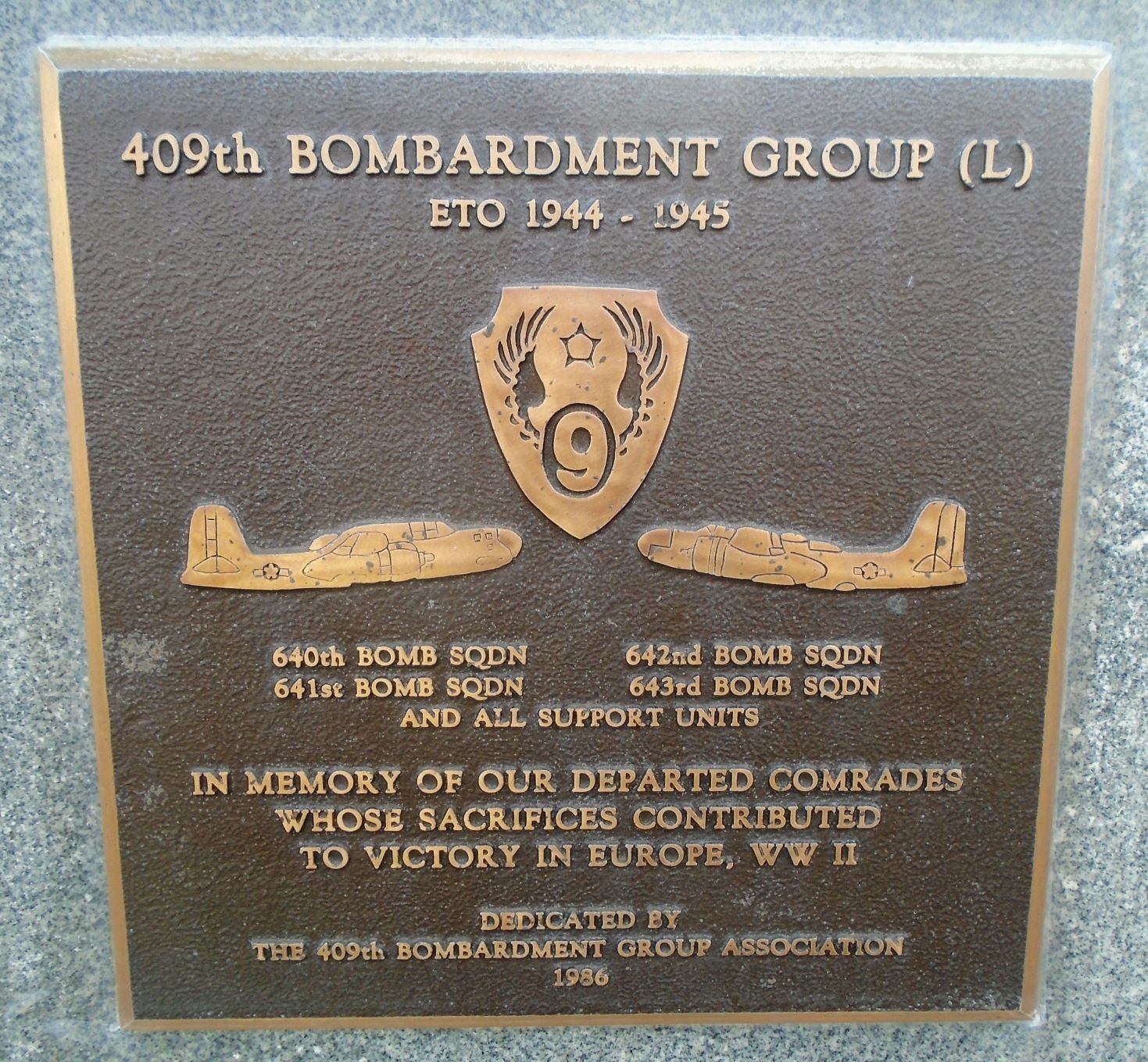 USAF ACADEMY 409TH BOMBARDMENT GROUP (L) WAR MEMORIAL PLAQUE