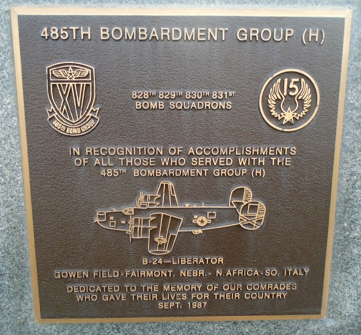 USAF ACADEMY 485TH BOMBARDMENT GROUP (H) WAR MEMORIAL PLAQUE
