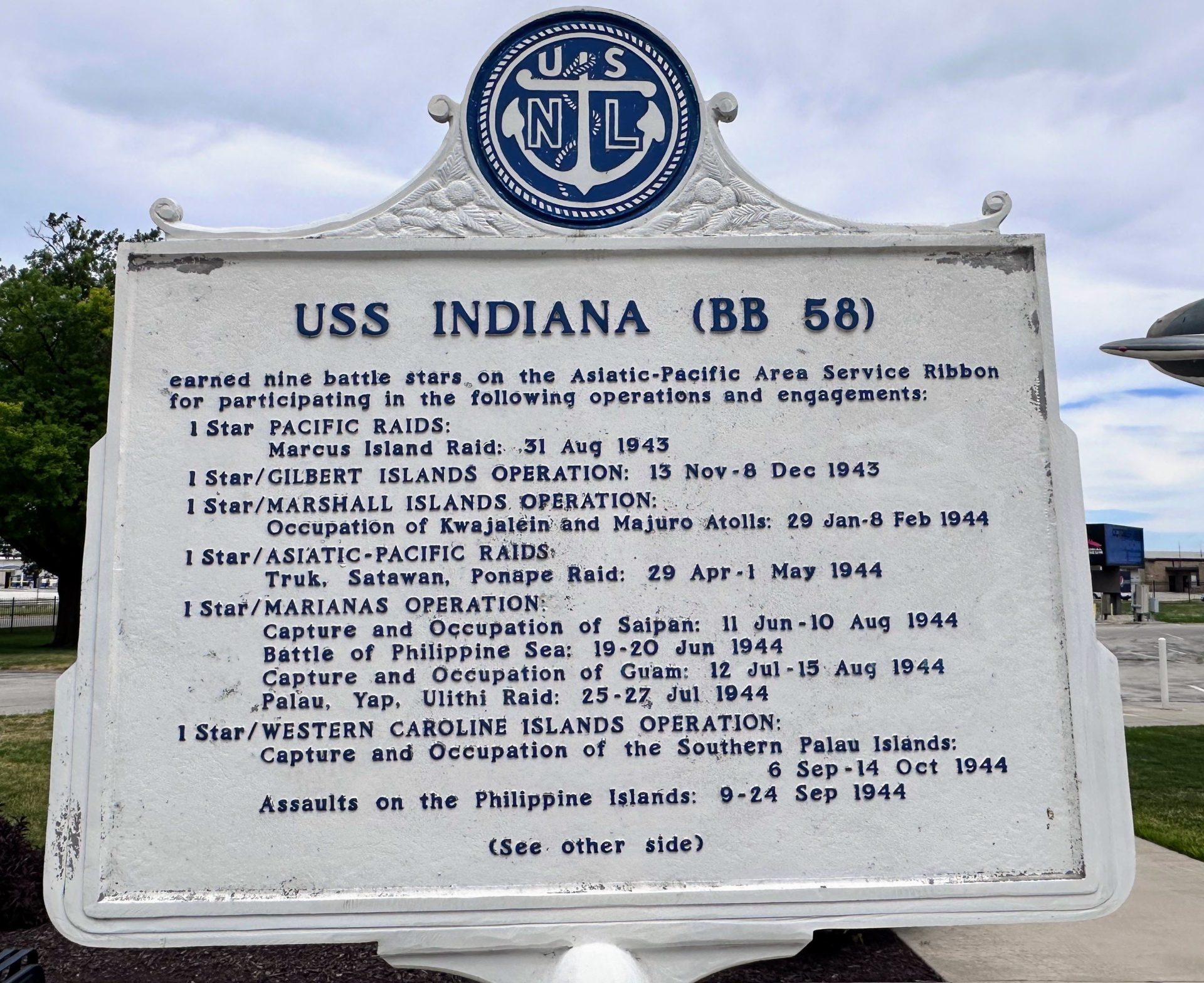 USS INDIANA (BB58) WAR MEMORIAL MARKER FRONT