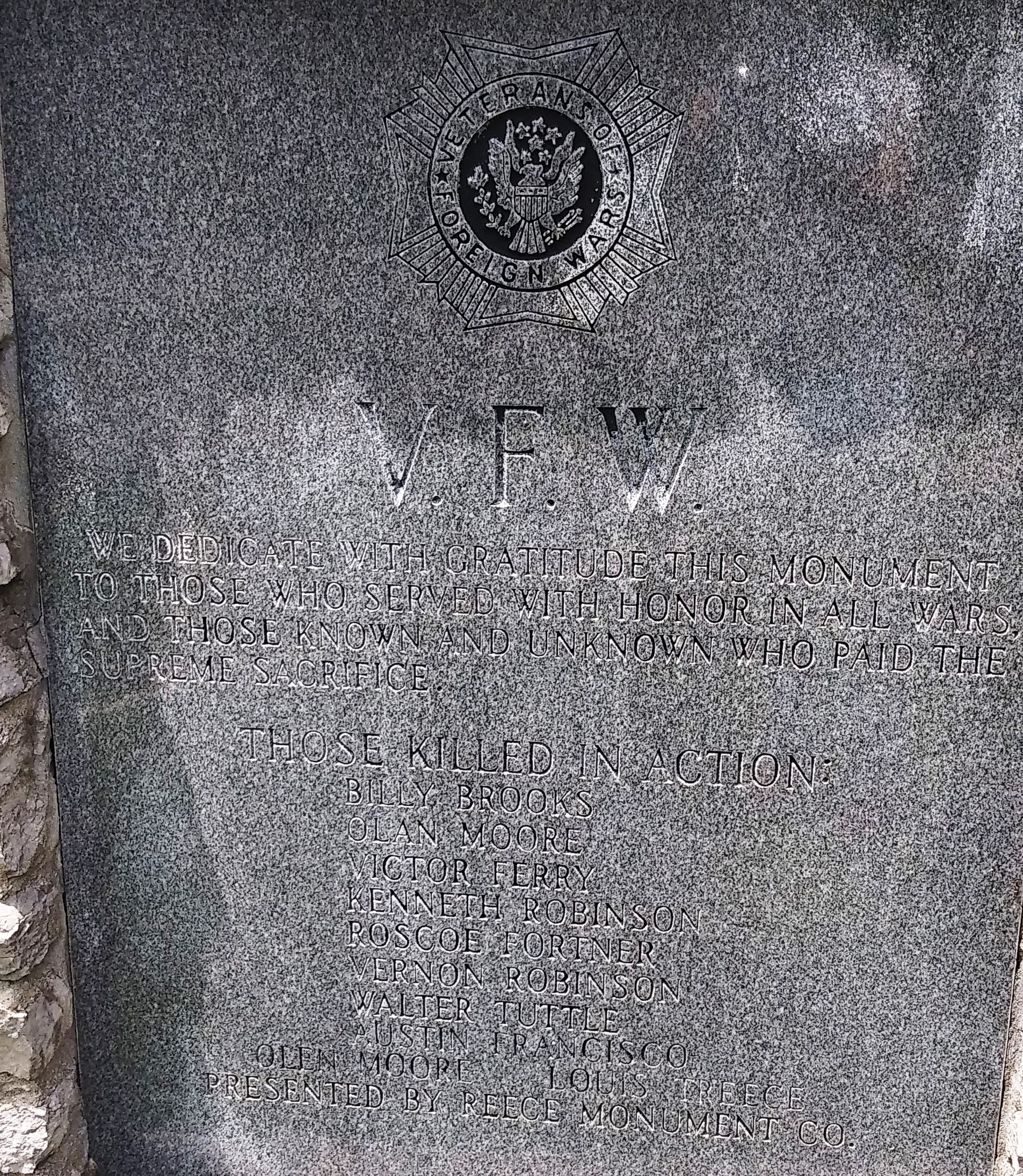 V.F.W. ALL WARS VETERANS MEMORIAL STONE