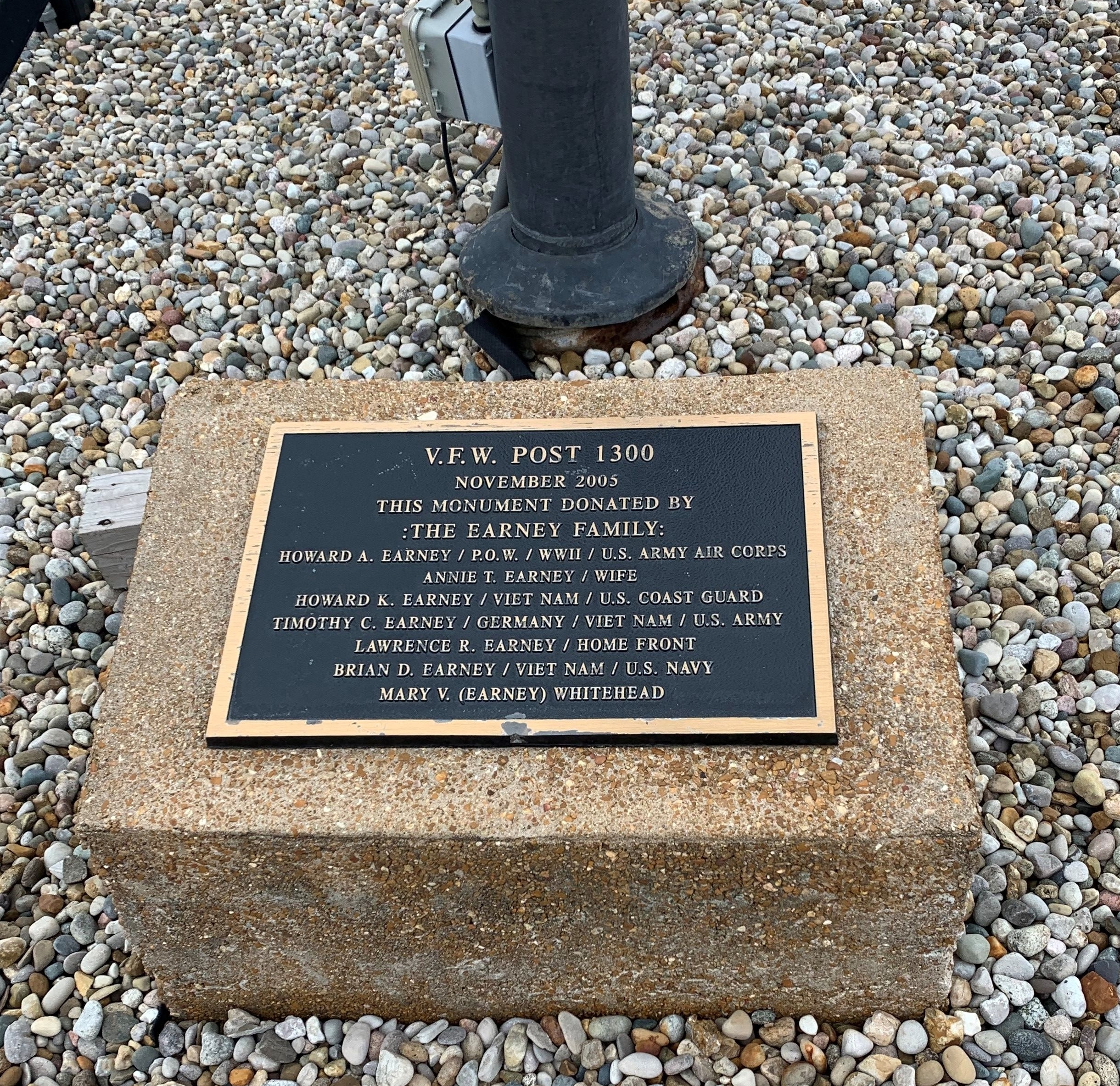 V.F.W. POST 1300 WAR MEMORIAL FLAGPOLE PLAQUE