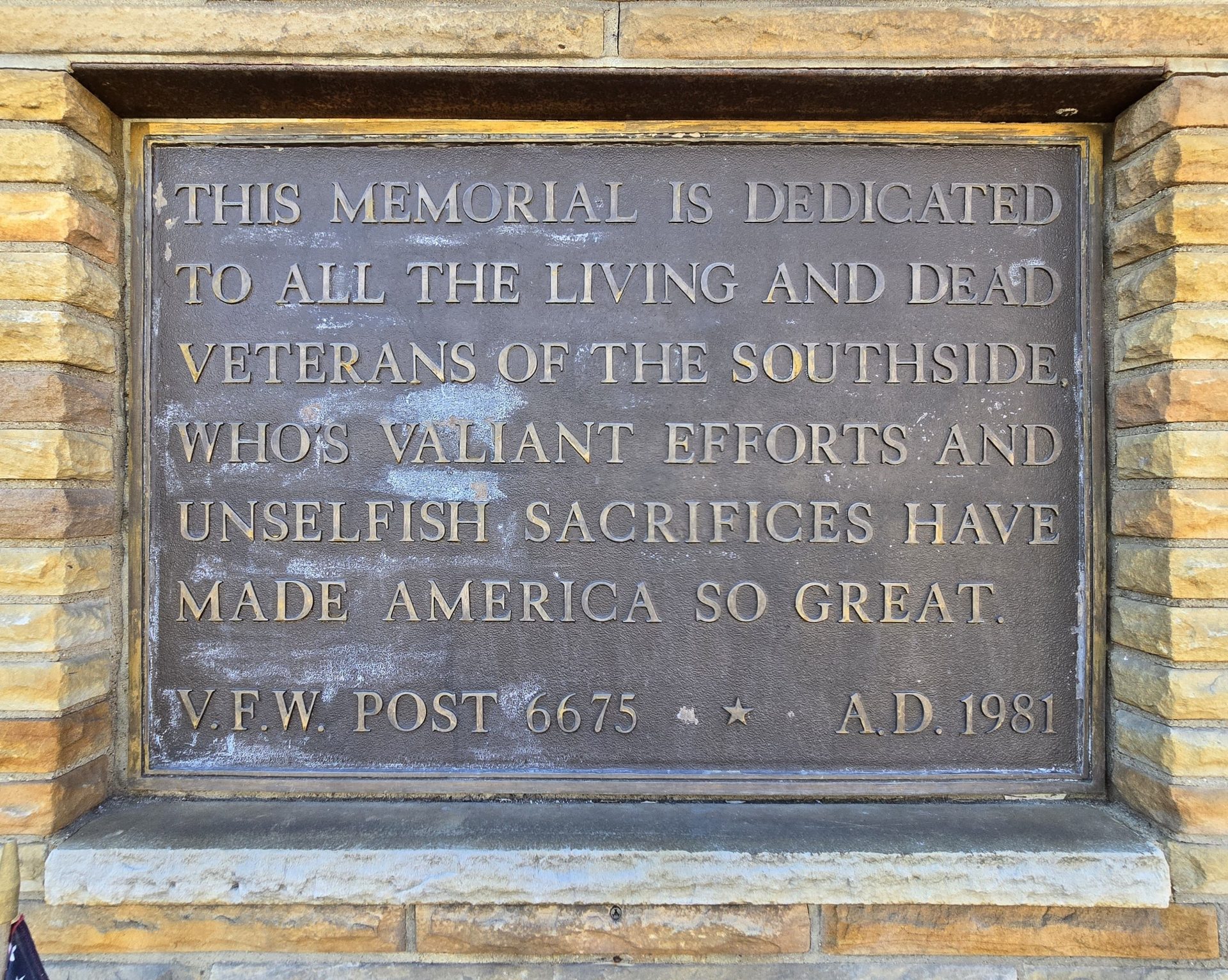 V.F.W. POST 6675 SOUTHSIDE VETERANS MEMORIAL PLAQUE