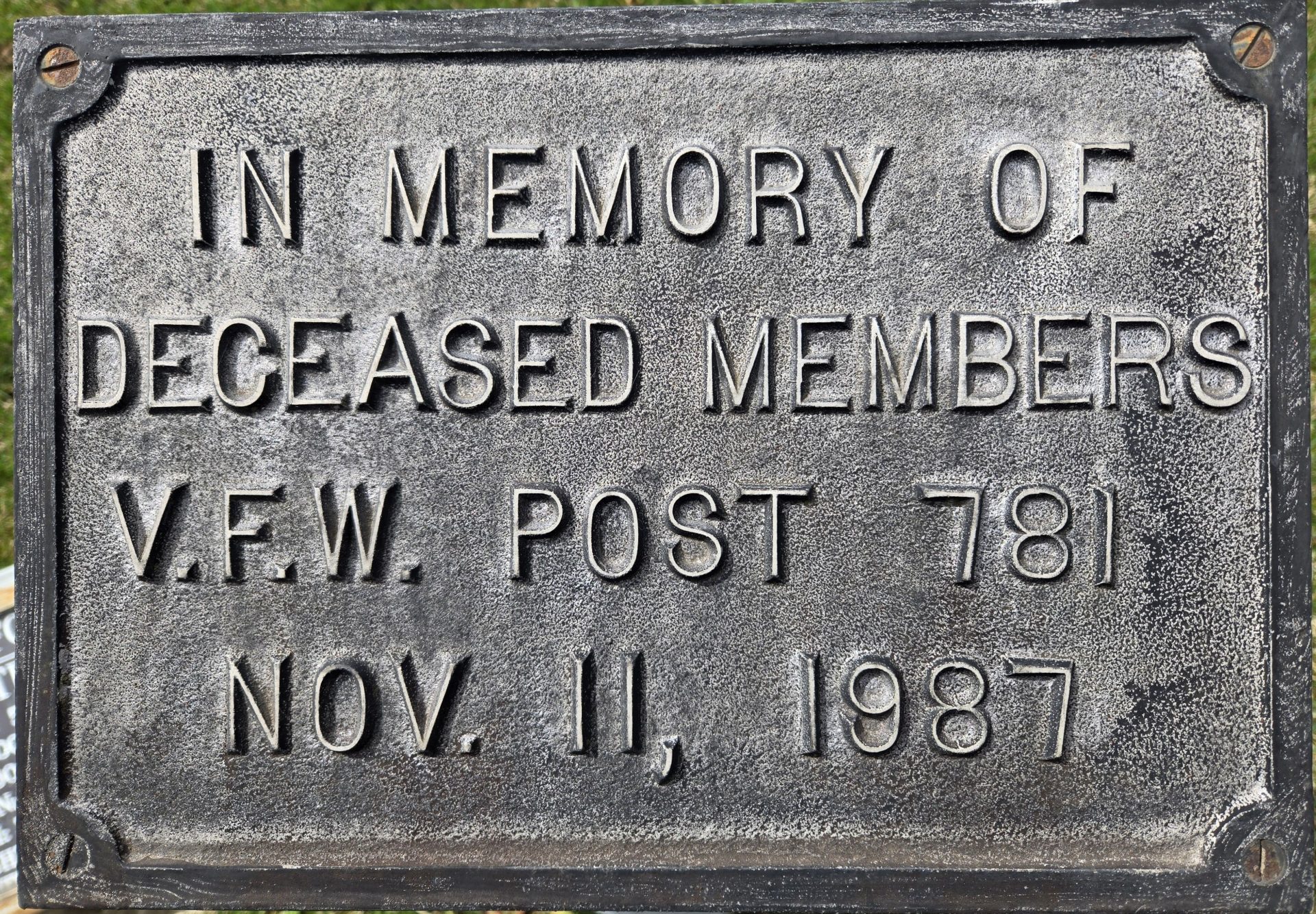V.F.W. POST 781 DECEASED MEMBERS MEMORIAL PLAQUE