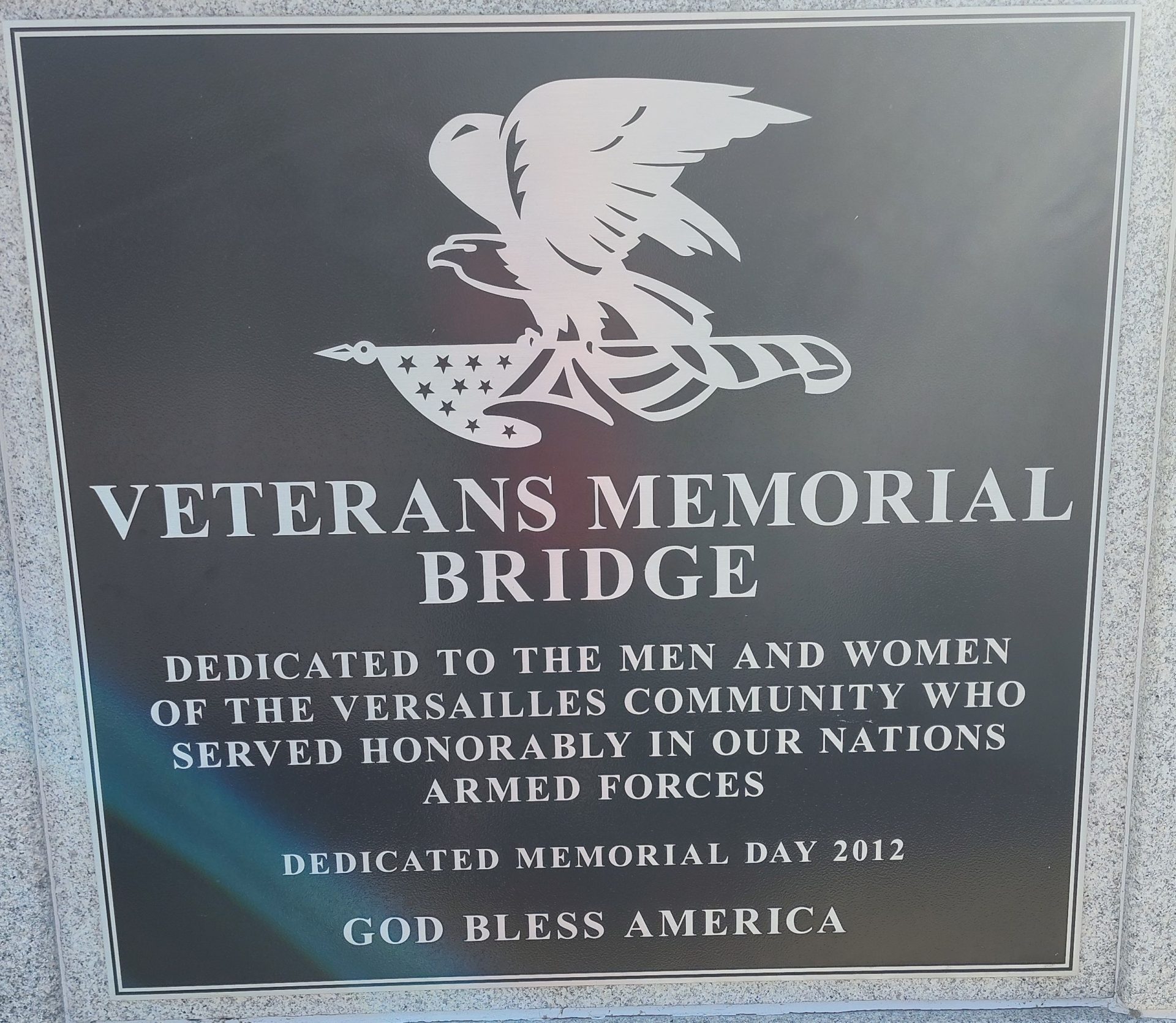 VERSAILLES COMMUNITY VETERANS MEMORIAL BRIDGE PLAQUE