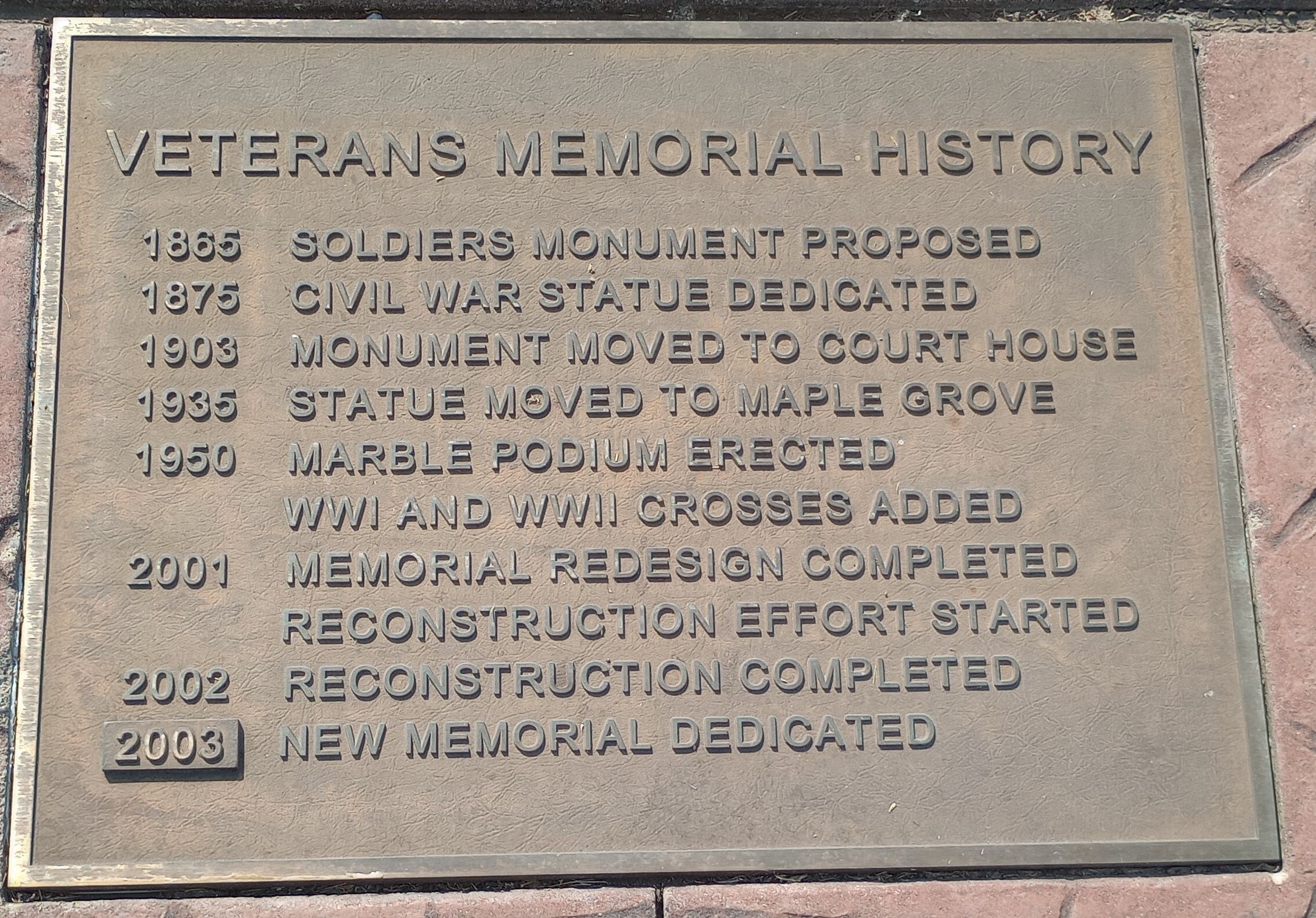 VETERANS MEMORIAL HISTORY PLAQUE