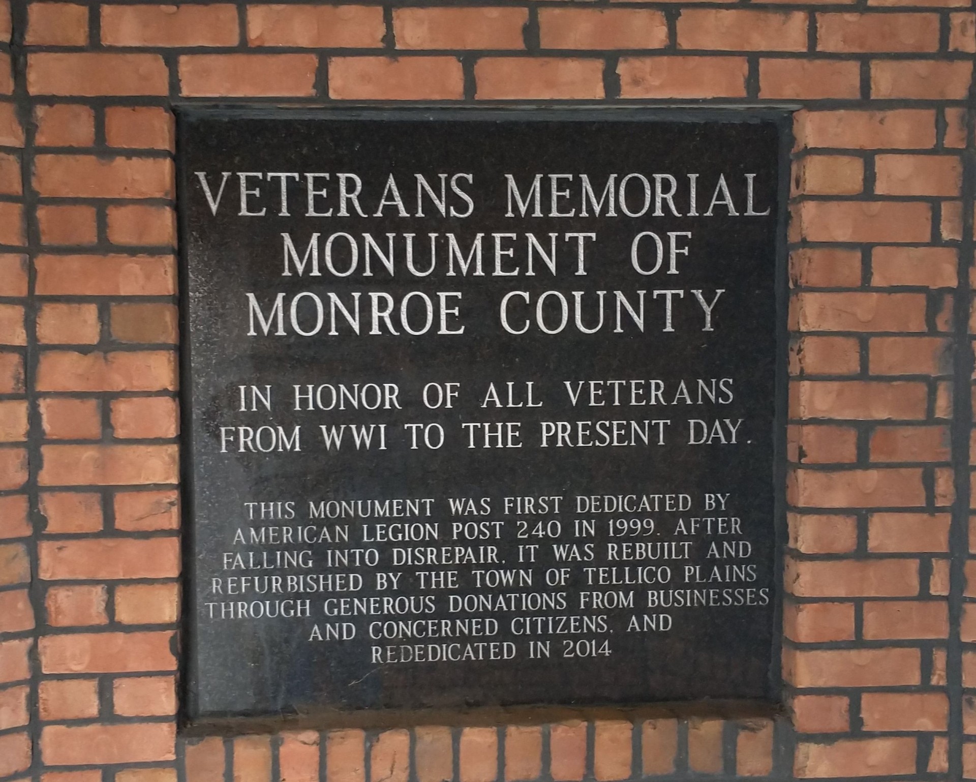 VETERANS MEMORIAL MONUMENT OF MONROE COUNTY PLAQUE