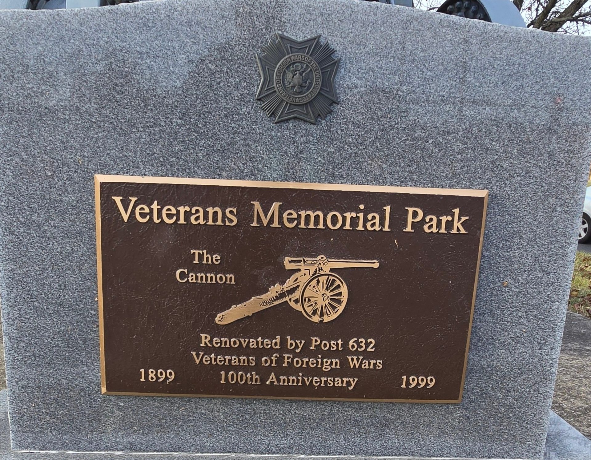 VETERANS MEMORIAL PARK CANNON PLAQUE