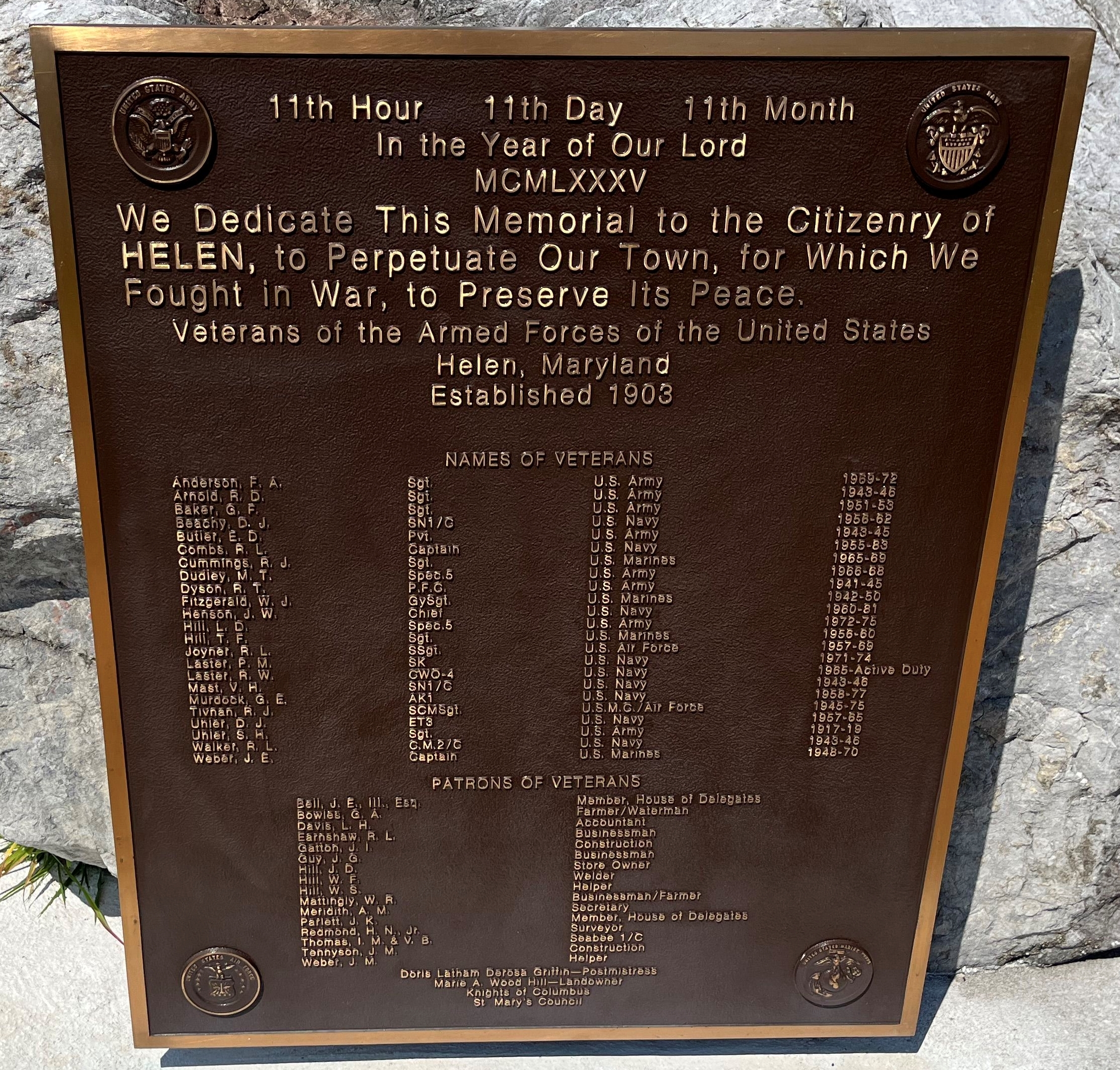 VETERANS OF HELEN MEMORIAL PLAQUE