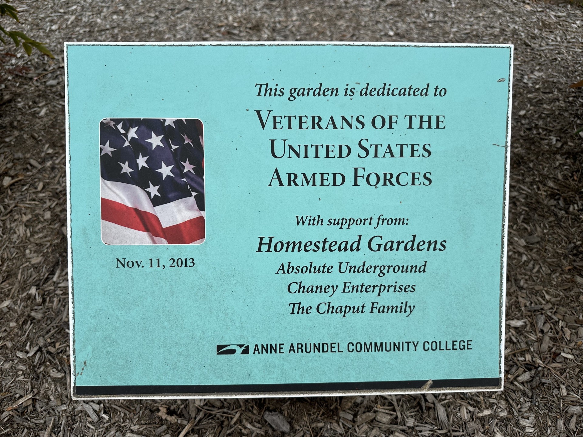 VETERANS OF THE UNITED STATES ARMED FORCES MEMORIAL GARDEN PLAQUE