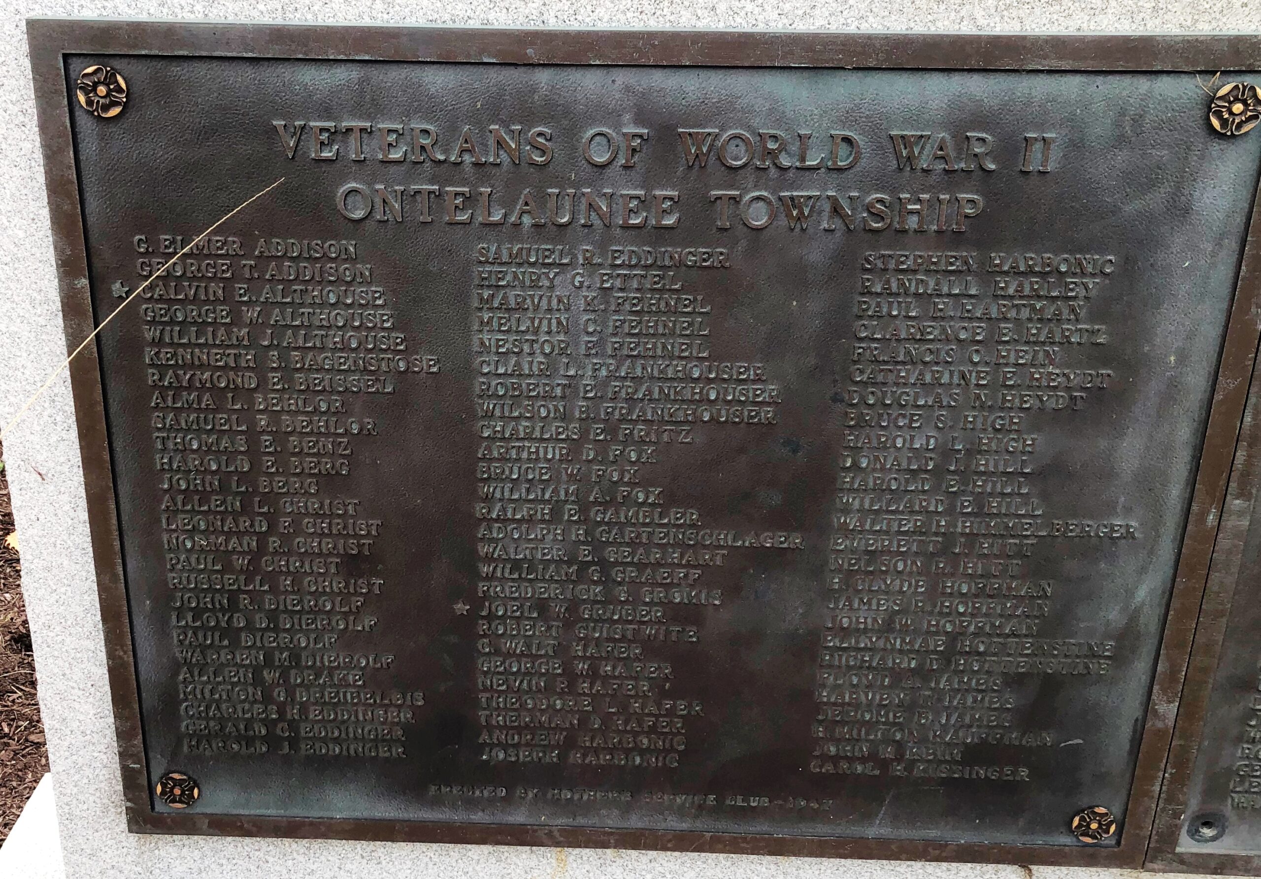 SEE ALSO-VETERANS OF WORLD WAR II ONTELAUNEE TOWNSHIP MEMORIAL