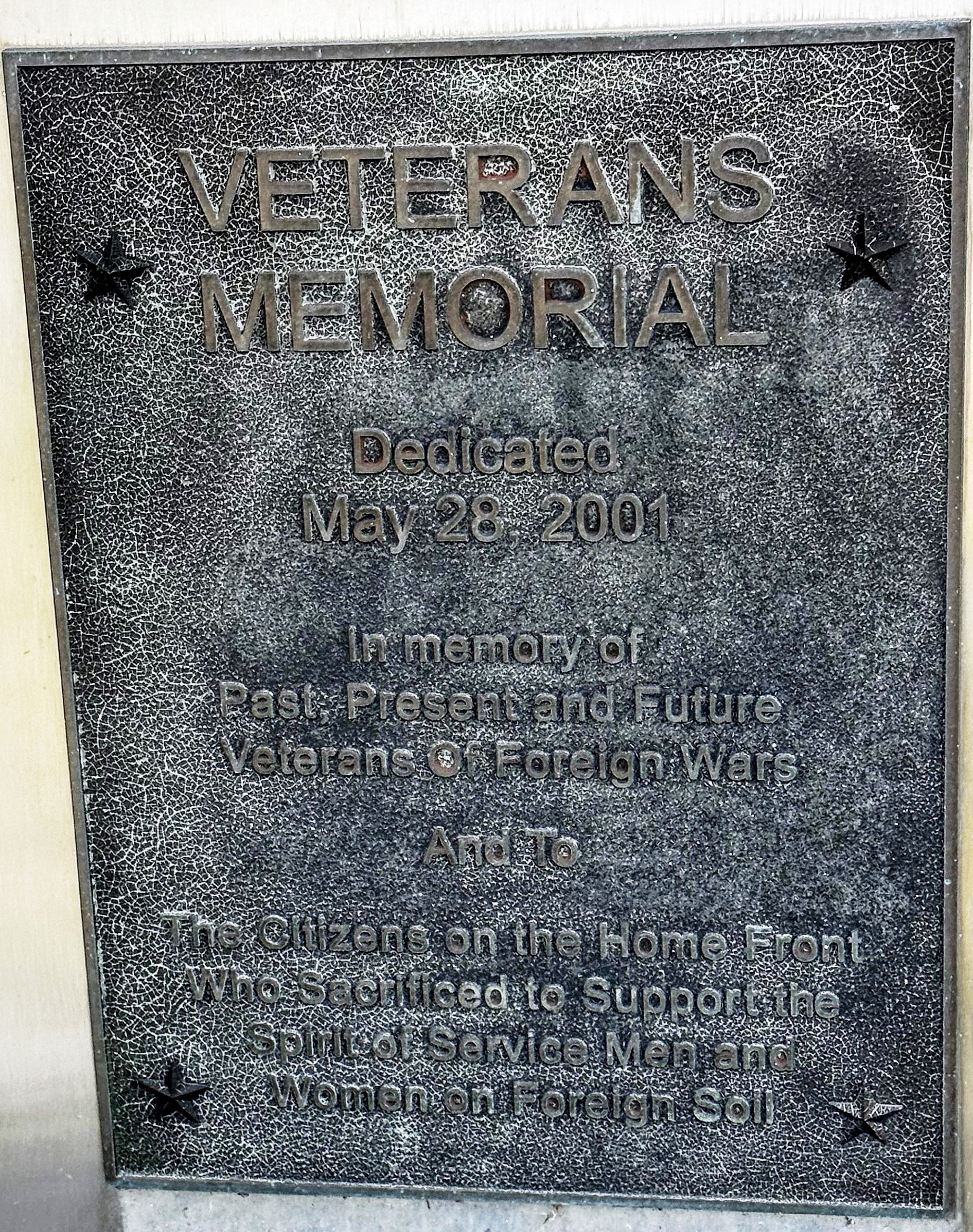 VFW POST 1855 VETERANS MEMORIAL PLAQUE A