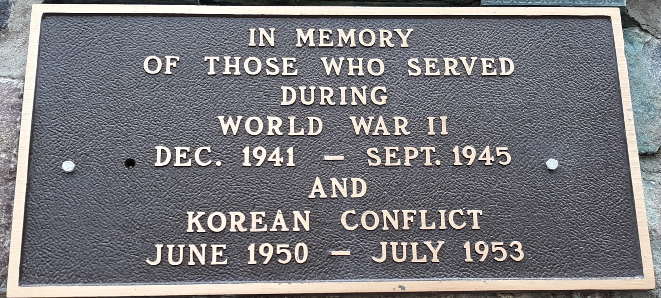 VILLAGE OF CLINTON WORLD WAR II AND KOREAN CONFLICT MEMORIAL PLAQUE