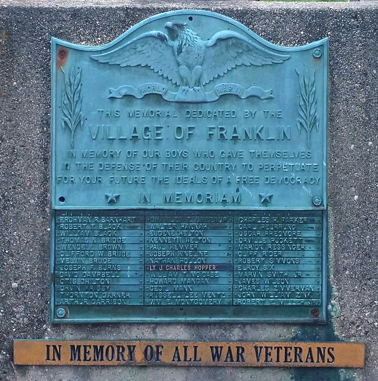 VILLAGE OF FRANKLIN ALL WAR VETERANS MEMORIAL PLAQUE