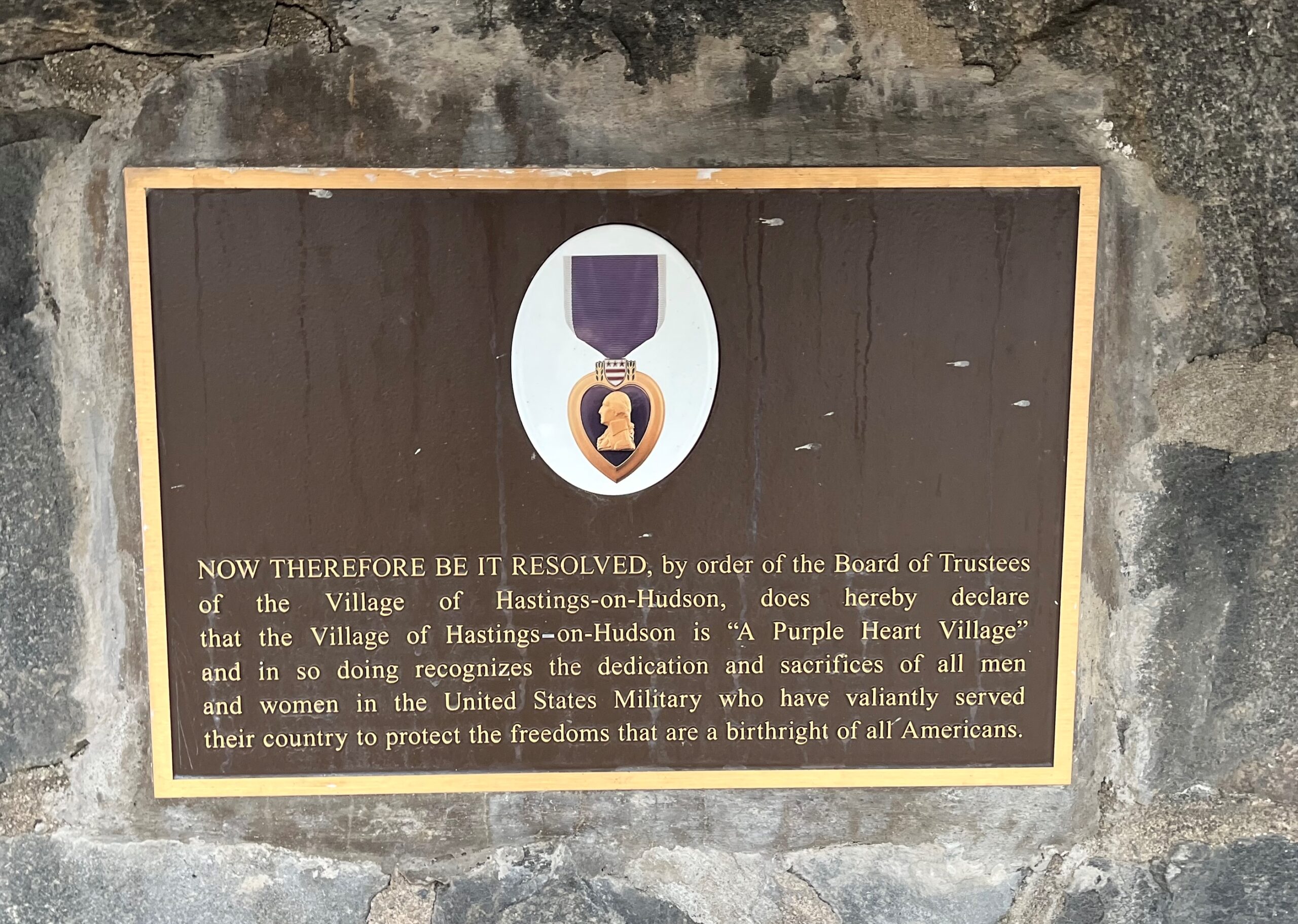 VILLAGE OF HASTINGS-ON-HUDSON “A PURPLE HEART VILLAGE” MEMORIAL PLAQUE