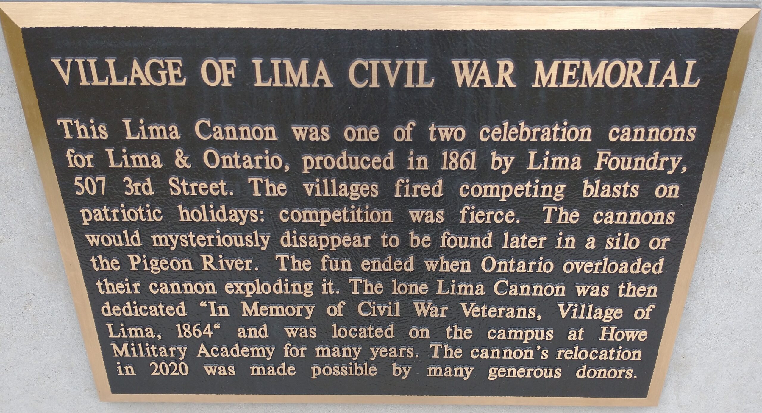 VILLAGE OF LIMA CIVIL WAR MEMORIAL CANNON PLAQUE