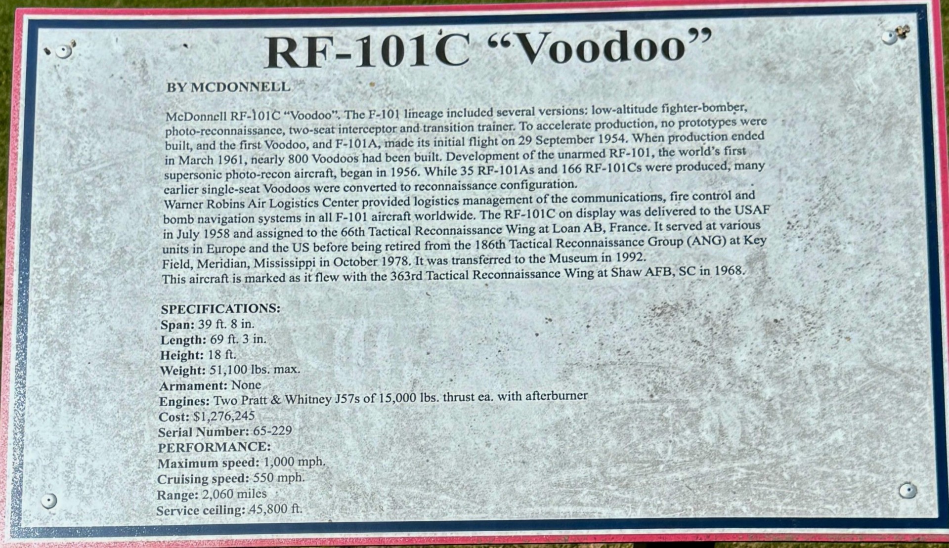 SEE ALSO-WARNER ROBINS RF-101C “VOODOO” MEMORIAL AIRCRAFT