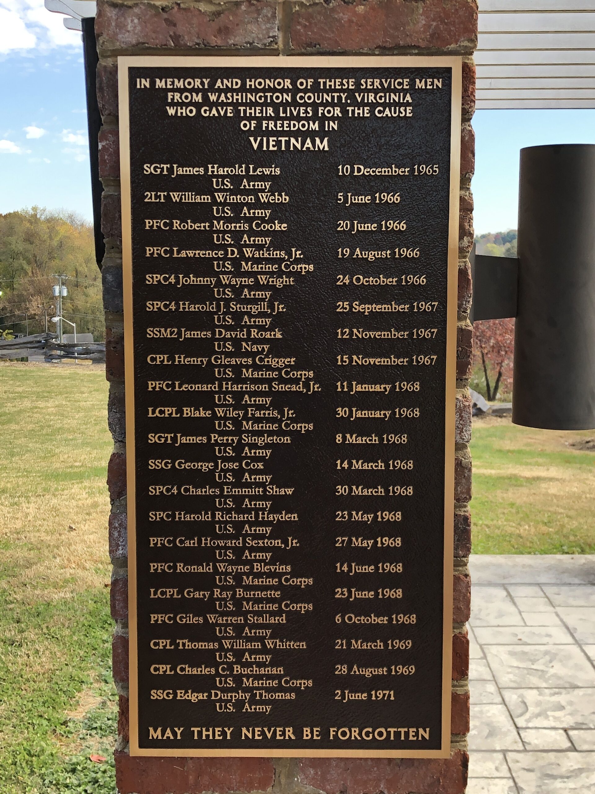 WASHINGTON COUNTY VIETNAM WAR MEMORIAL PLAQUE