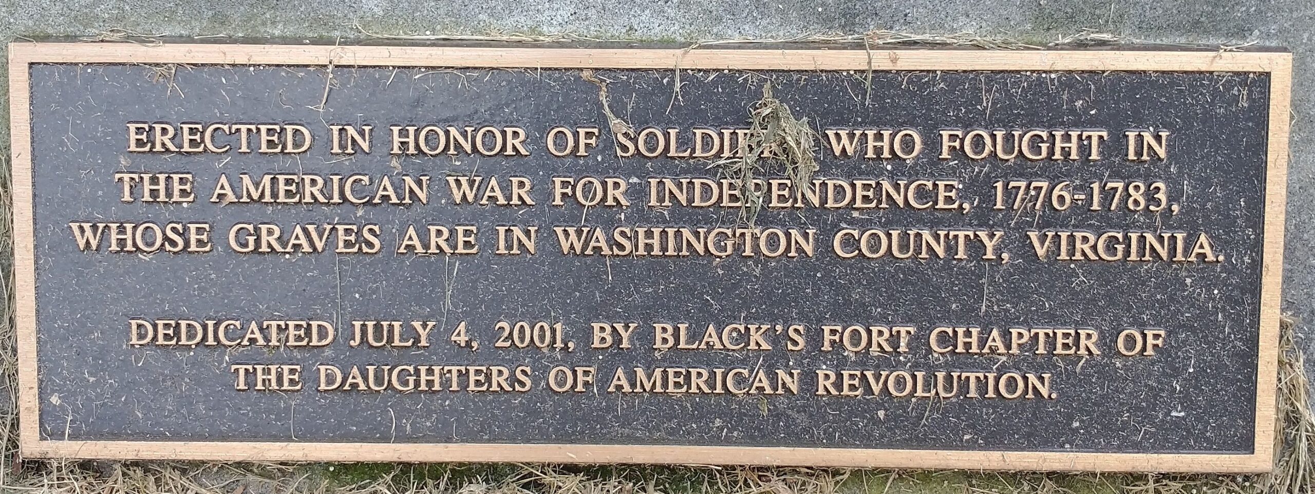 WASHINGTON COUNTY, VIRGINIA REVOLUTIONARY WAR MEMORIAL PLAQUE