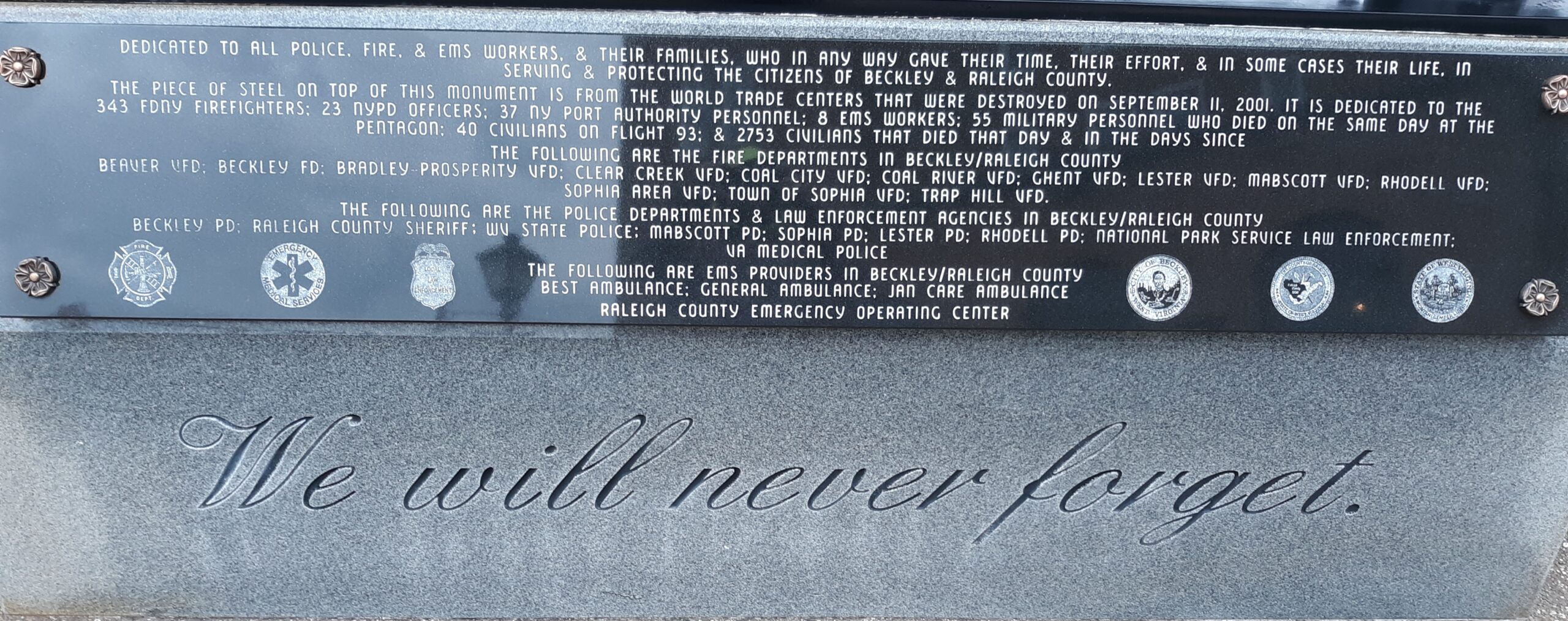WE WILL NEVER FORGET MEMORIAL PLAQUE