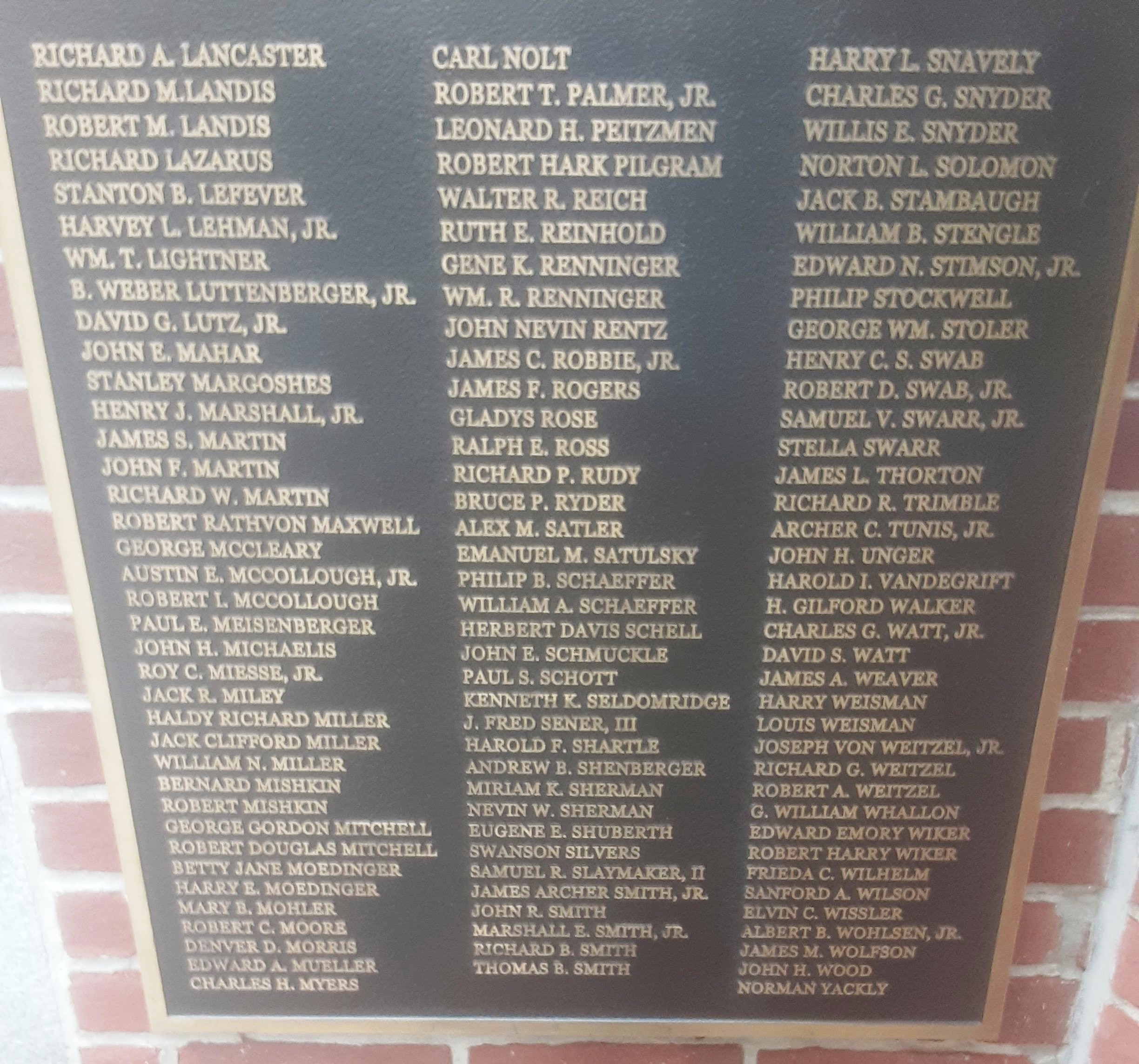 WEST END WORLD WAR II HONOR ROLL MEMORIAL PLAQUE B