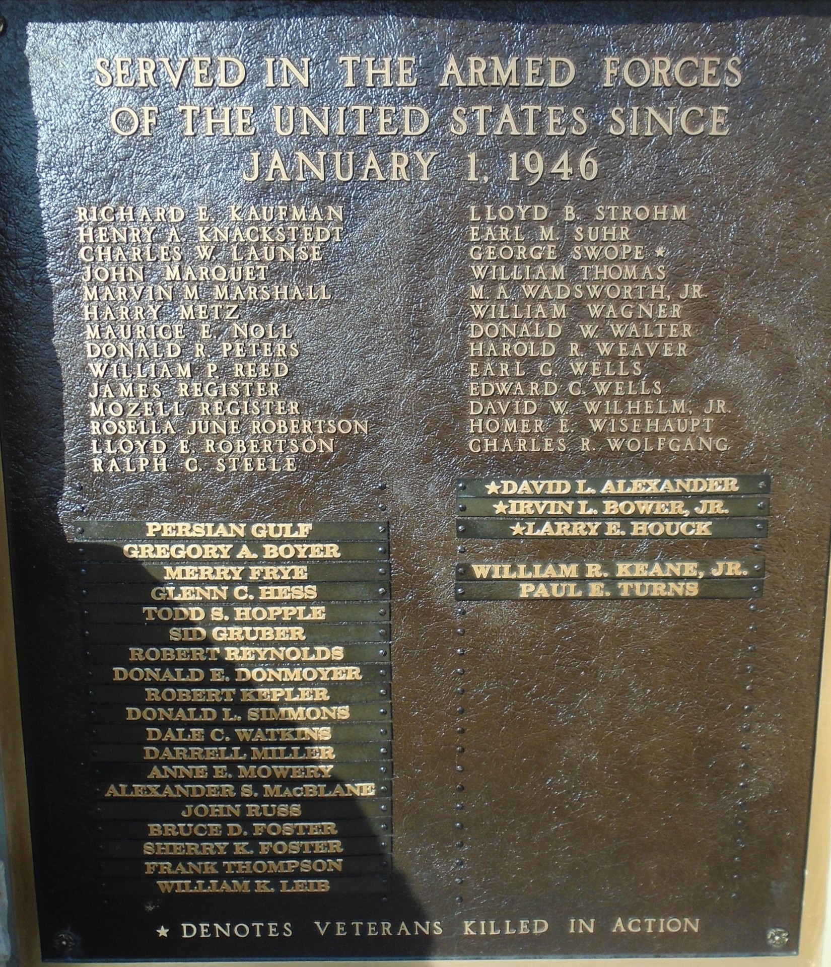 WEST HANOVER TOWNSHIP VETERANS WHO SERVED AFTER JANUARY 1, 1946 MEMORIAL PLAQUE B