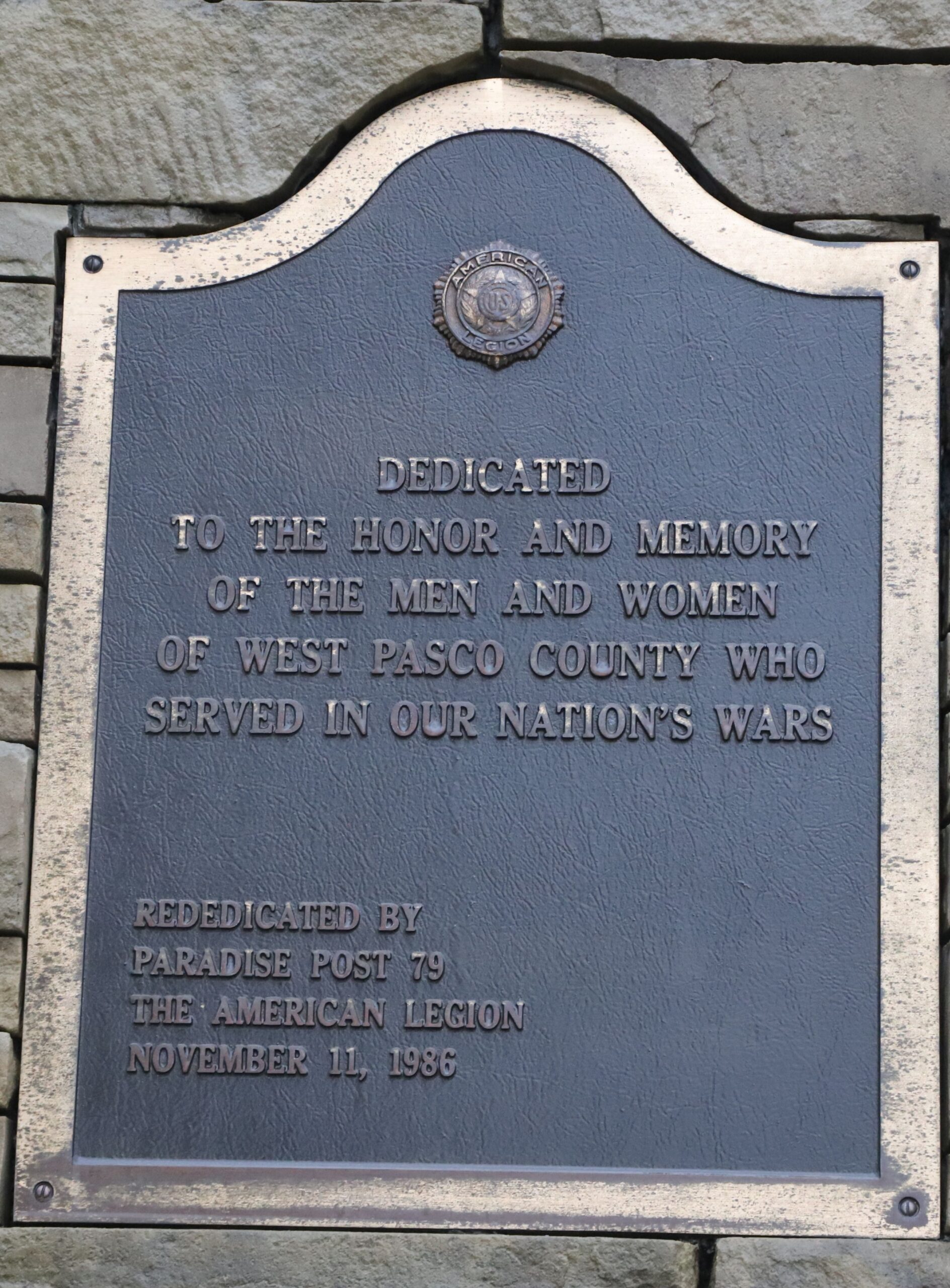WEST PASCO COUNTY WAR VETERANS MEMORIAL PLAQUE