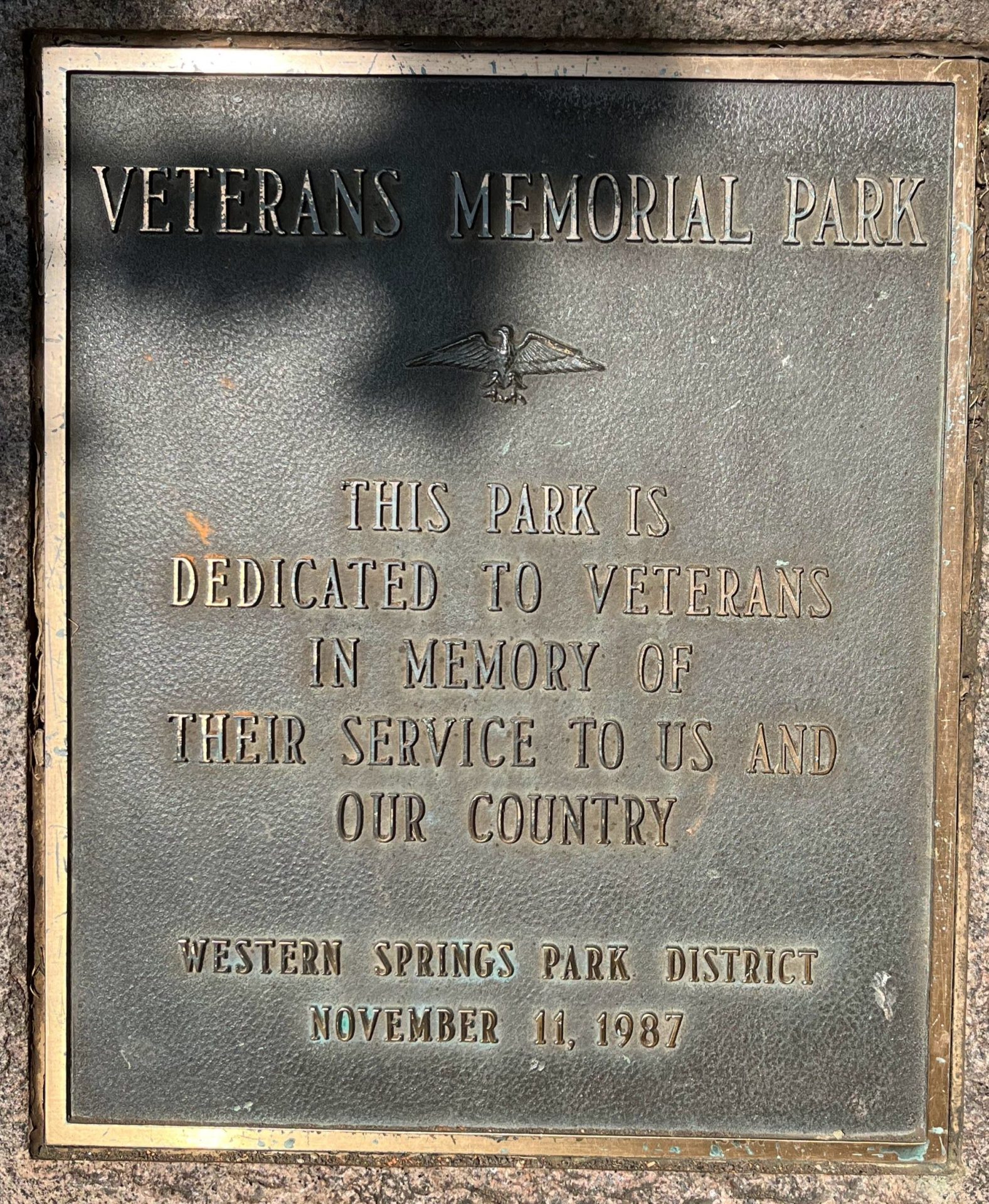 WESTERN SPRINGS VETERANS MEMORIAL PARK PLAQUE A