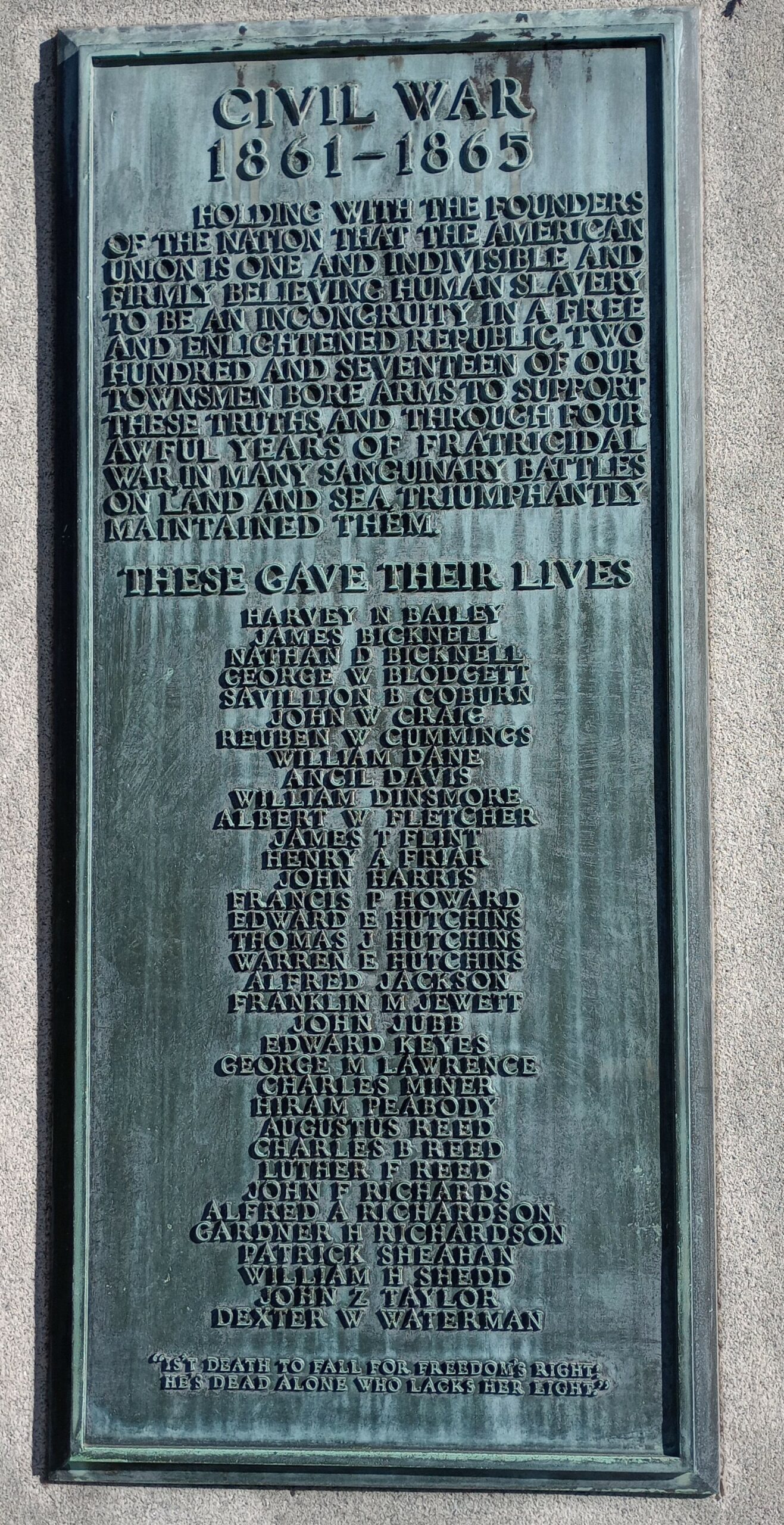 WESTFORD CIVIL WAR 1861-1865 MEMORIAL PLAQUE