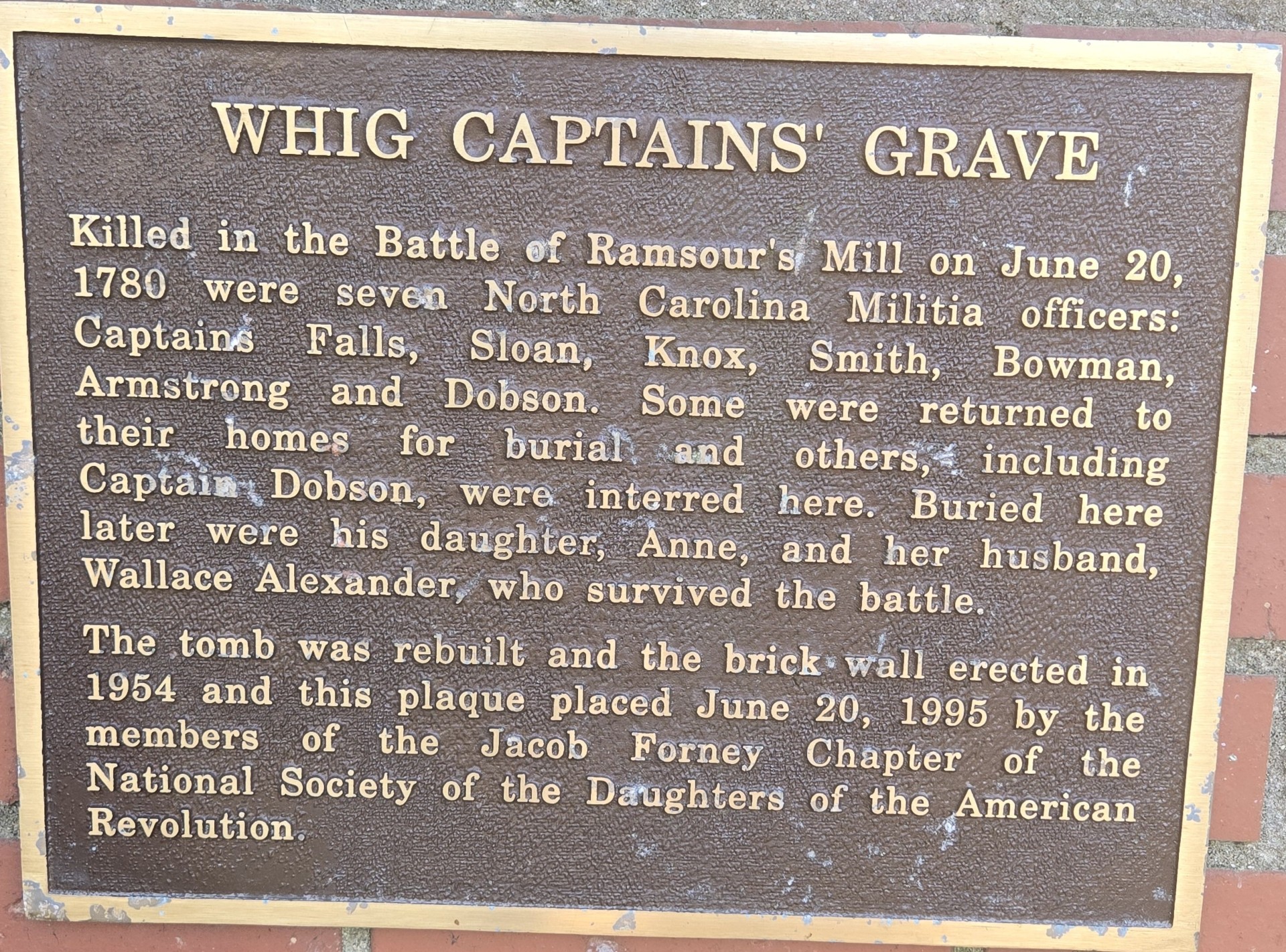 WHIG CAPTAINS’ GRAVE REVOLUTIONARY WAR MEMORIAL PLAQUE