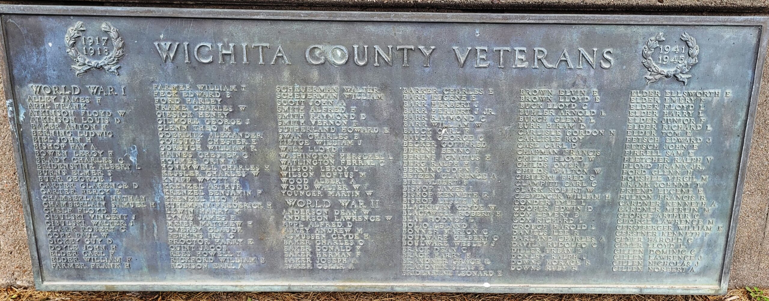 WICHITA COUNTY VETERANS MEMORIAL PLAQUE A
