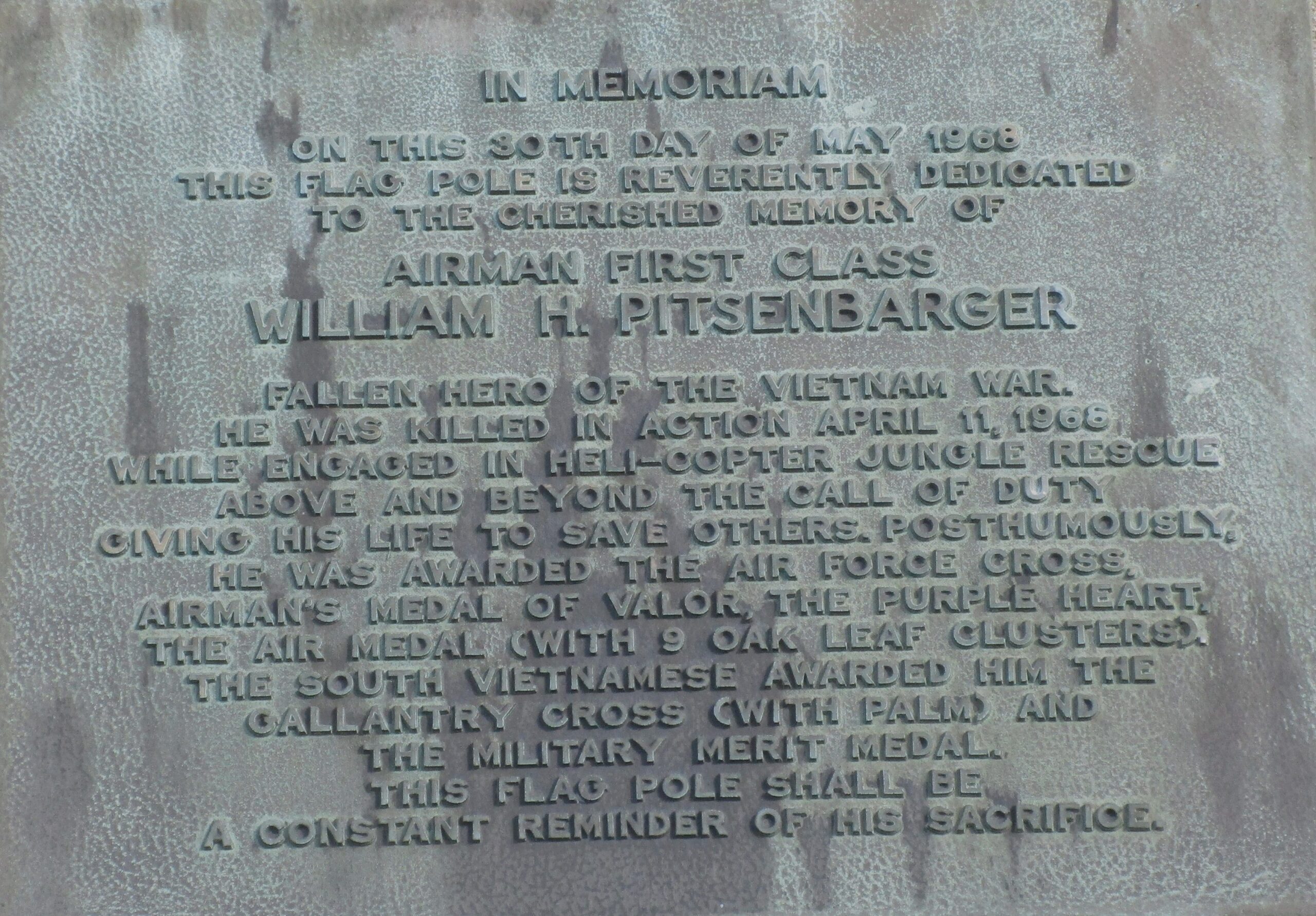 WILLIAM H. PITSENBARGER WAR MEMORIAL FLAGPOLE PLAQUE