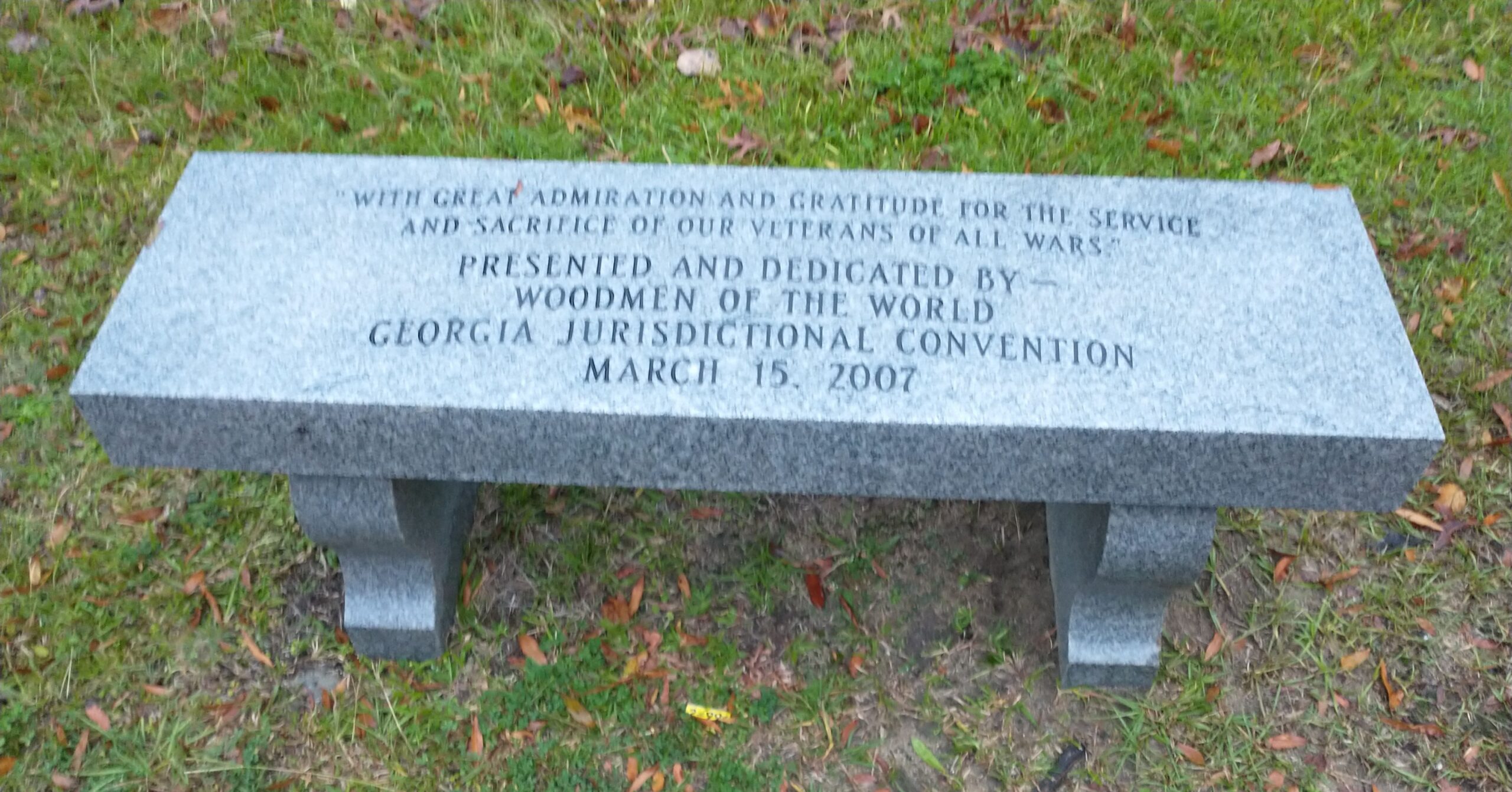 WOODMEN OF THE WORLD ALL WARS VETERANS MEMORIAL BENCH
