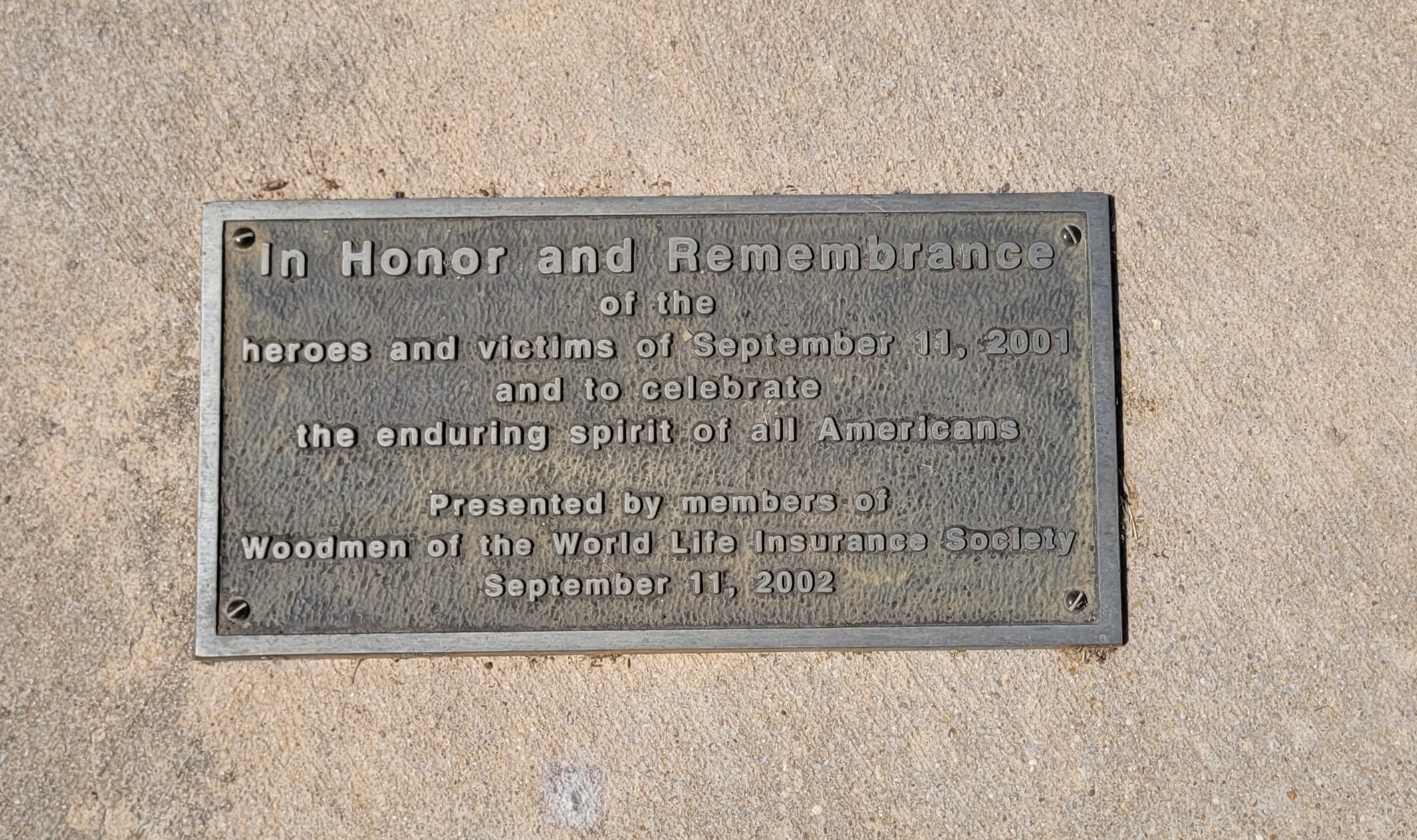 WOODMEN OF THE WORLD LIFE INSURANCE SOCIETY SEPTEMBER 11, 2001 MEMORIAL FLAGPOLE PLAQUE
