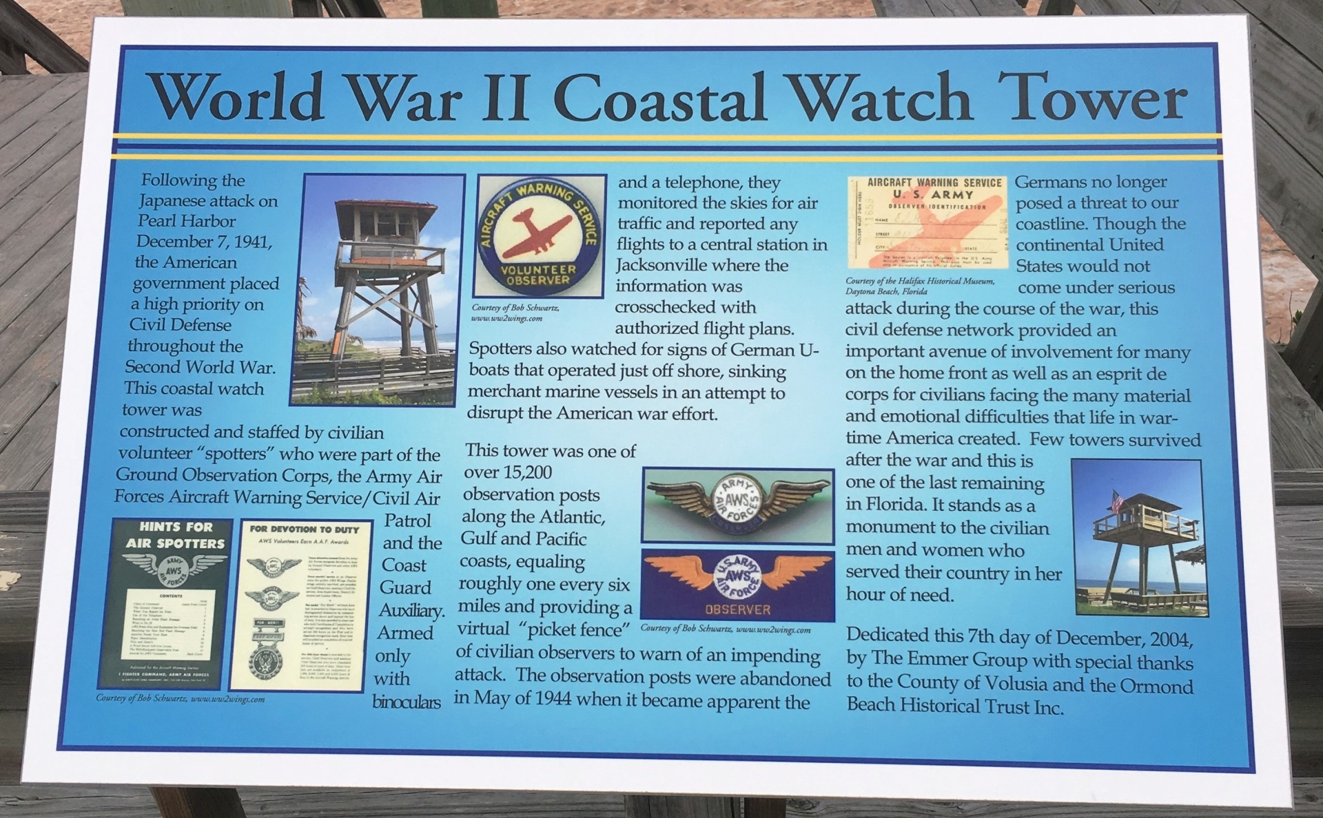 WORLD WAR II COASTAL WATCH TOWER MEMORIAL PLAQUE